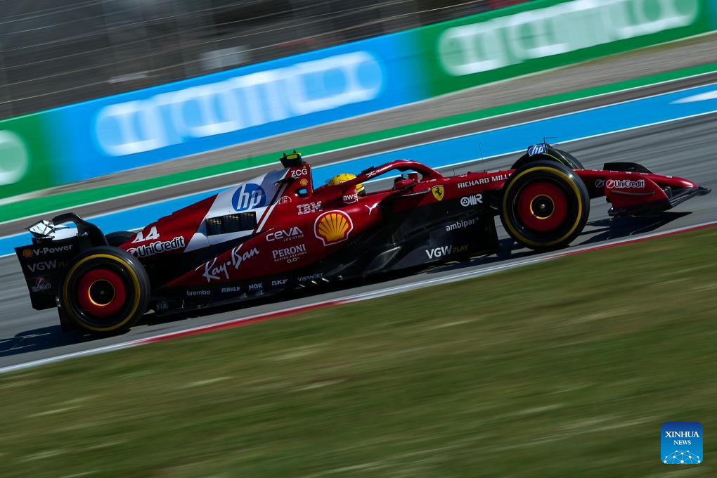 Ferrari's British driver Lewis Hamilton takes a curve during a free practice of the 2025 Formula One Spanish Grand Prix at the Catalunya Circuit in Montmelo, near Barcelona, Spain, May 30, 2025. (Photo by Pablo Morano/Xinhua)