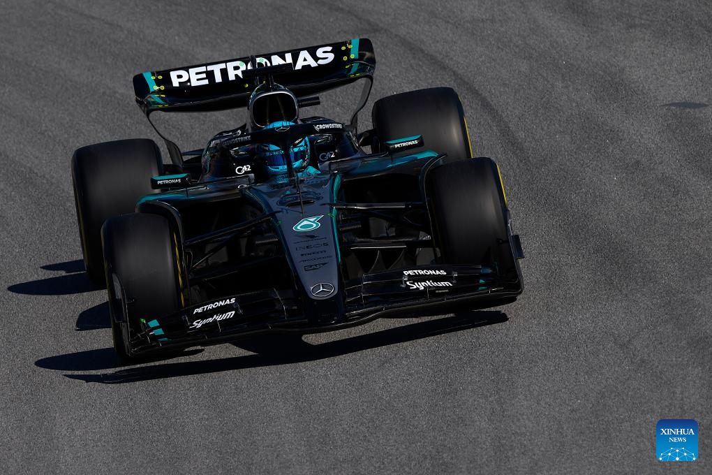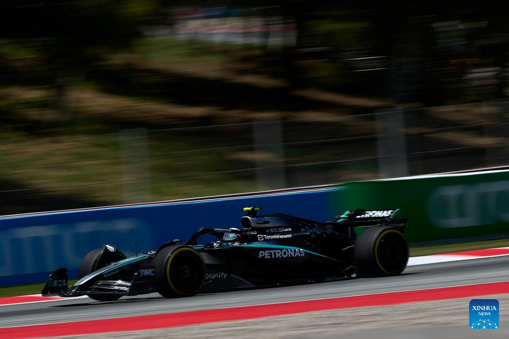 Mercedes' British driver George Russell competes during a free practice of the 2025 Formula One Spanish Grand Prix at the Catalunya Circuit in Montmelo, near Barcelona, Spain, May 30, 2025. (Photo by Pablo Morano/Xinhua)