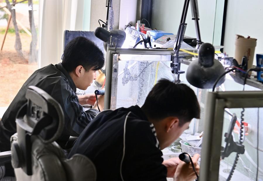 Tang Xiao grinds raw jade at his studio in Xiuyan Manchu Autonomous County, northeast China's Liaoning Province, May 20, 2025. (Xinhua/Wu Qinghao)Tang Xiao (L) and his father exchange views on jade carving technique at his studio in Xiuyan Manchu Autonomous County, northeast China's Liaoning Province, May 20, 2025. (Xinhua/Wu Qinghao)A jade carver makes a draft at Tang Xiao's studio in Xiuyan Manchu Autonomous County, northeast China's Liaoning Province, May 20, 2025. (Xinhua/Wu Qinghao)Jade carvers work at Tang Xiao's studio in Xiuyan Manchu Autonomous County, northeast China's Liaoning Province, May 20, 2025. (Xinhua/Wu Qinghao)