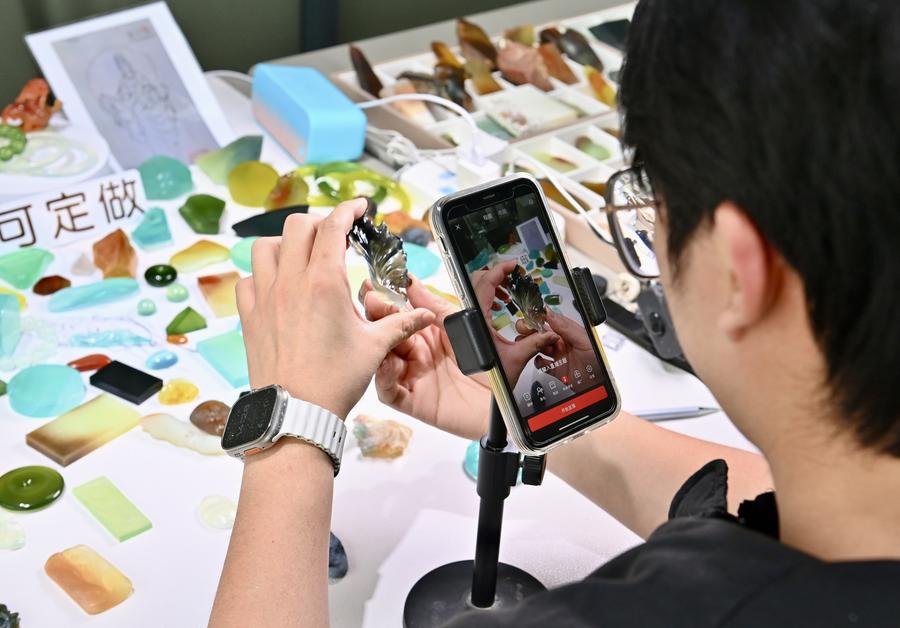 Tang Xiao observes a jade's veining at his studio in Xiuyan Manchu Autonomous County, northeast China's Liaoning Province, May 30, 2025. (Xinhua/Wu Qinghao)Tang Xiao prepares for a livestreaming show at his studio in Xiuyan Manchu Autonomous County, northeast China's Liaoning Province, May 20, 2025. (Xinhua/Wu Qinghao)