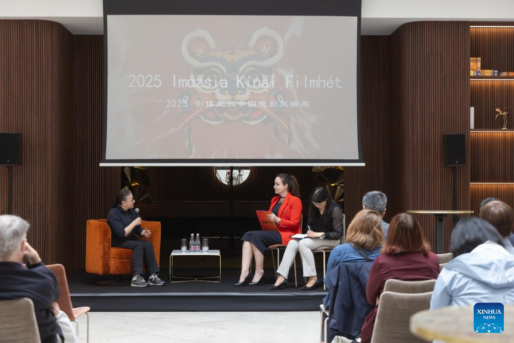 Hungarian filmmaker and screenwriter Ildiko Enyedi (1st L) talks during a panel discussion at the "Imazsia Chinese Film Week 2025" forum in Budapest, Hungary on May 30, 2025.(Photo by Attila Volgyi/Xinhua)