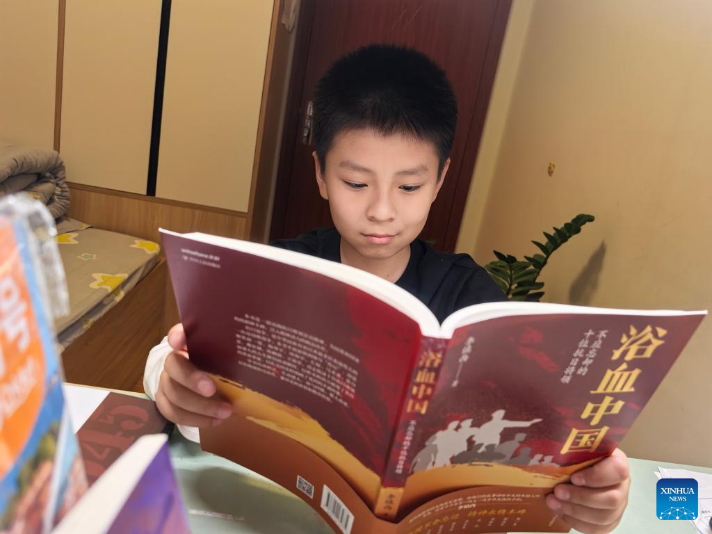 "Sometimes we found it difficult to answer his questions, so we had to check the history books or look online for related data to 'make up for the lesson'," said Zhang's mother Jiang Nan. She said her son is not alone, as she had seen an increasing number of children show an interest in the history of WWII, and together they have discussions.