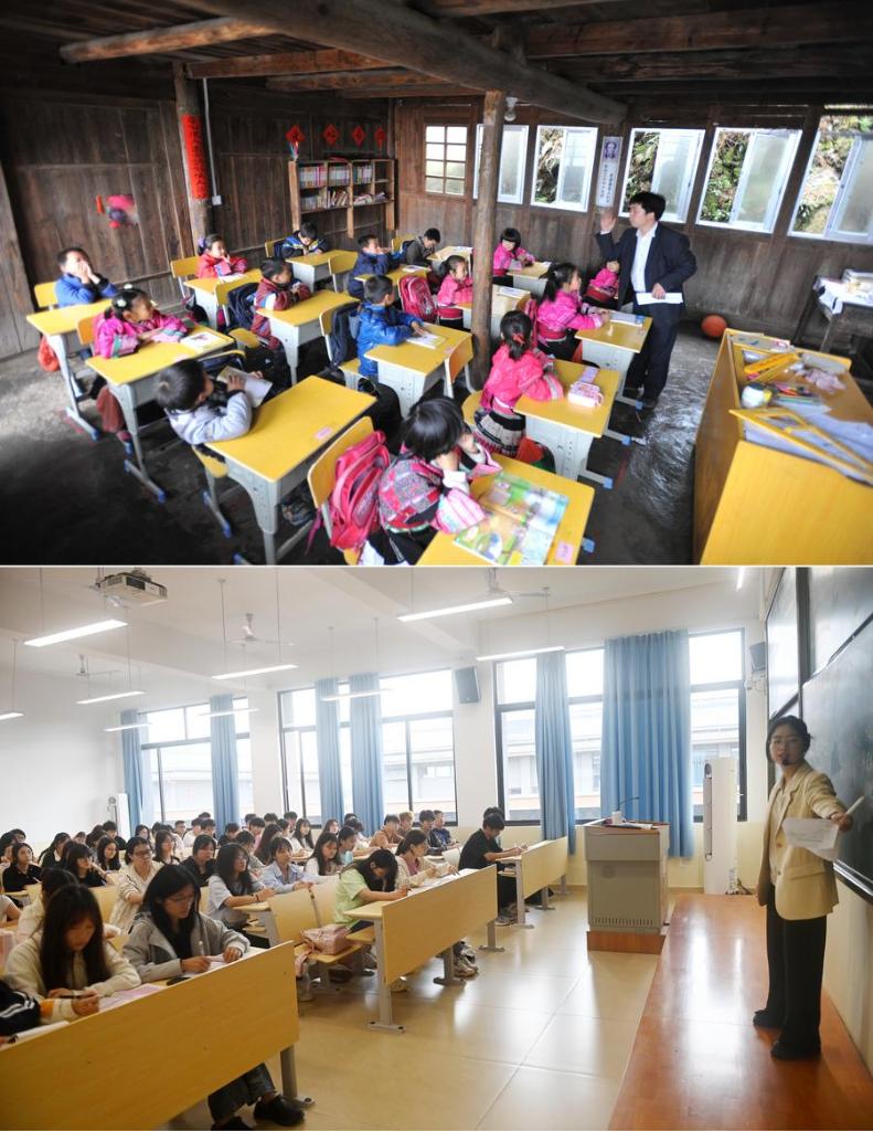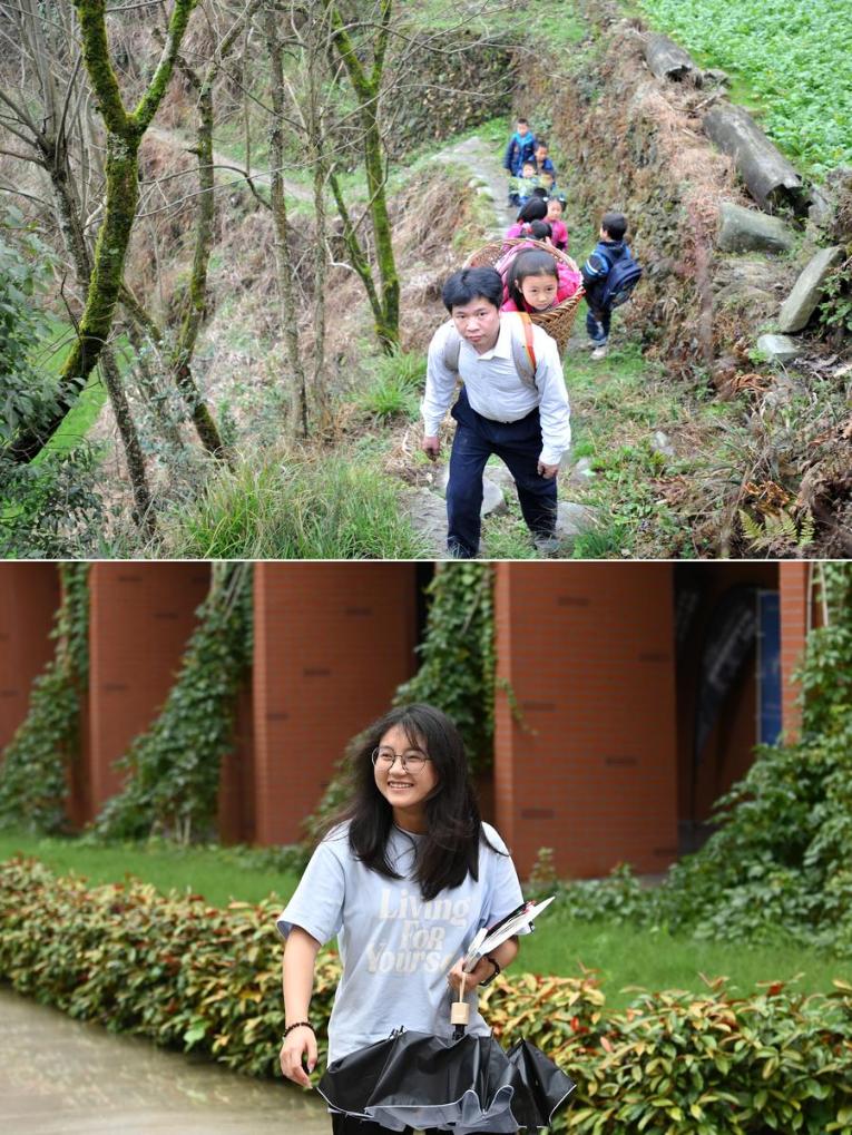 At the time, there were no roads to the school. Yu Qigui, the school's only teacher, would carry children or their heavy schoolbags in his back basket through the mountains each day, earning him the nickname "the back-basket teacher." In 2014, he was recognized as a National Model Teacher.