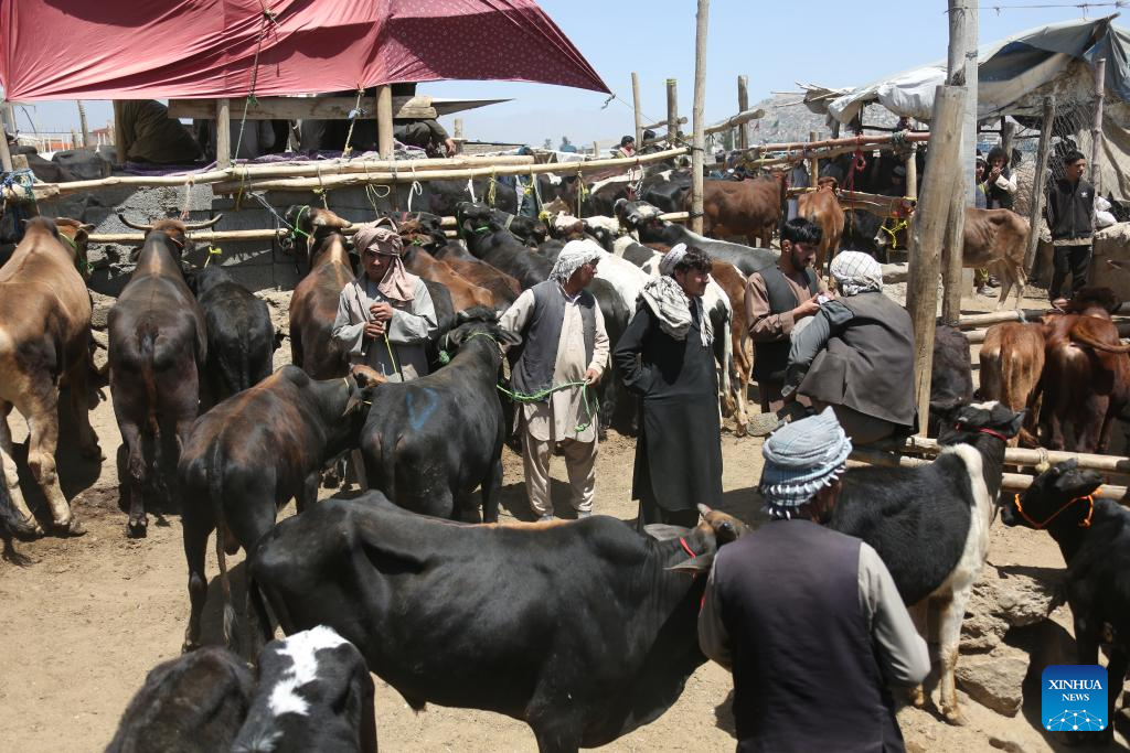 People visit a livestock market in preparation for the upcoming Eid al-Adha holiday in Kabul, Afghanistan, June 1, 2025. (Photo by Saifurahman Safi/Xinhua)