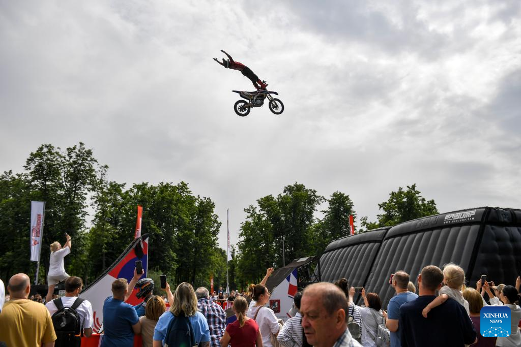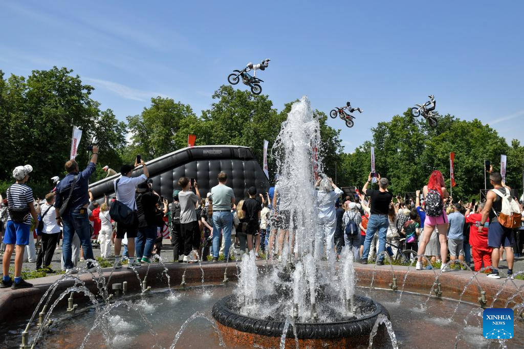 A motorcyclist performs during Moscow Sports Day in Moscow, Russia, on May 31, 2025. (Photo by Alexander Zemlianichenko Jr/Xinhua)
