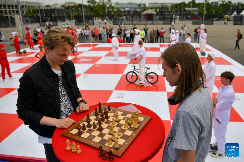 People play chess during Moscow Sports Day in Moscow, Russia, on May 31, 2025. (Photo by Alexander Zemlianichenko Jr/Xinhua)
