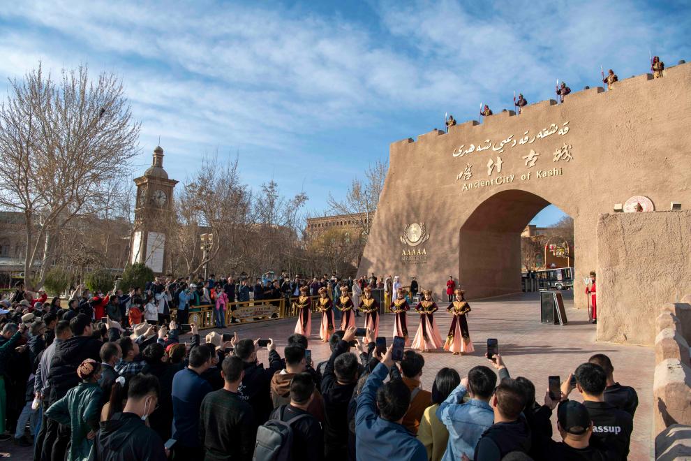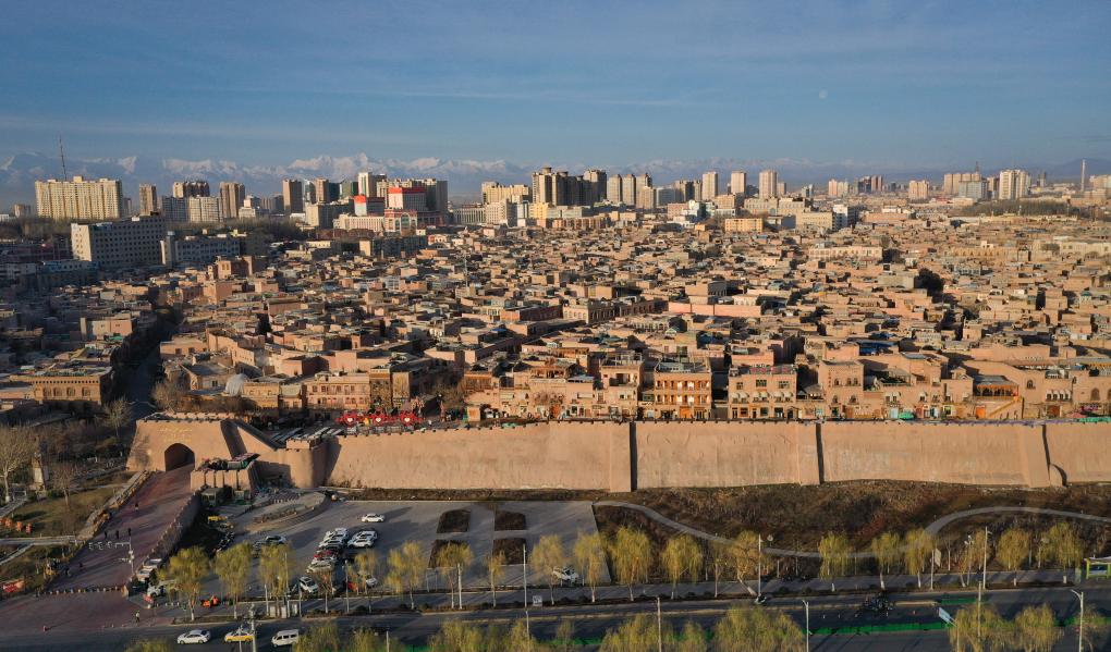 This aerial photo shows a view of the ancient city of Kashgar, northwest China's Xinjiang Uygur Autonomous Region, March 10, 2023. (Xinhua/Li Xiang)This aerial photo shows a view of the ancient city of Kashgar, northwest China's Xinjiang Uygur Autonomous Region, March 10, 2023. (Xinhua/Li Xiang)Visitors watch performances at the gate of the ancient city of Kashgar, northwest China's Xinjiang Uygur Autonomous Region, March 10, 2023. (Xinhua/Hu Huhu)Visitors watch a perform in the ancient city of Kashgar, northwest China's Xinjiang Uygur Autonomous Region, April 29, 2024. (Xinhua/Wang Fei)