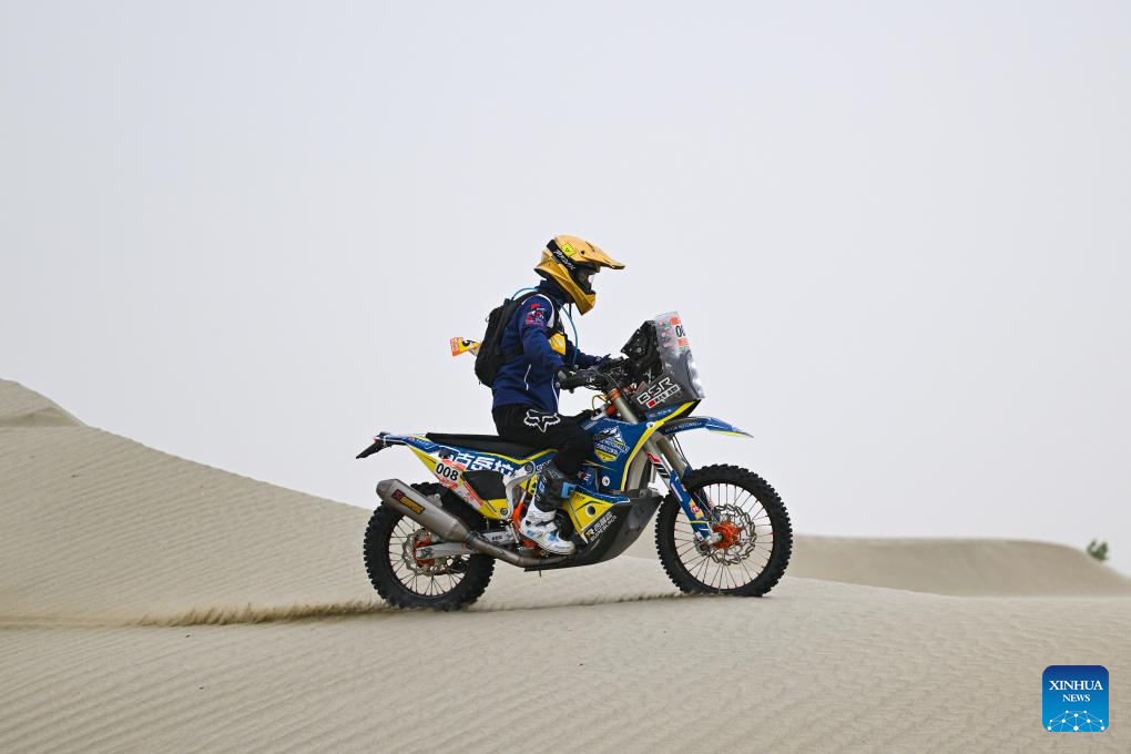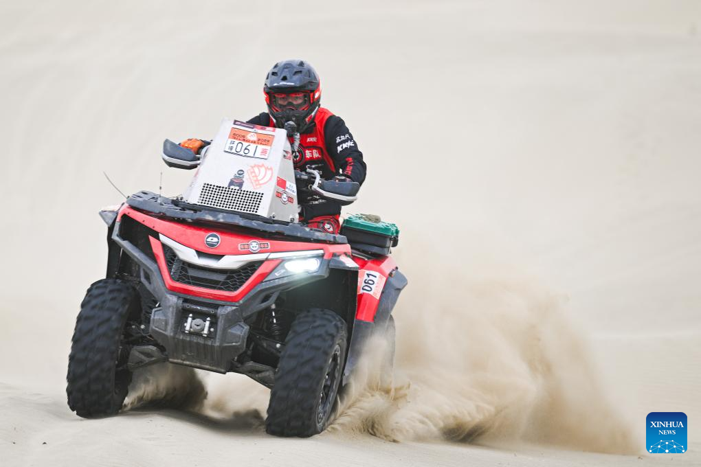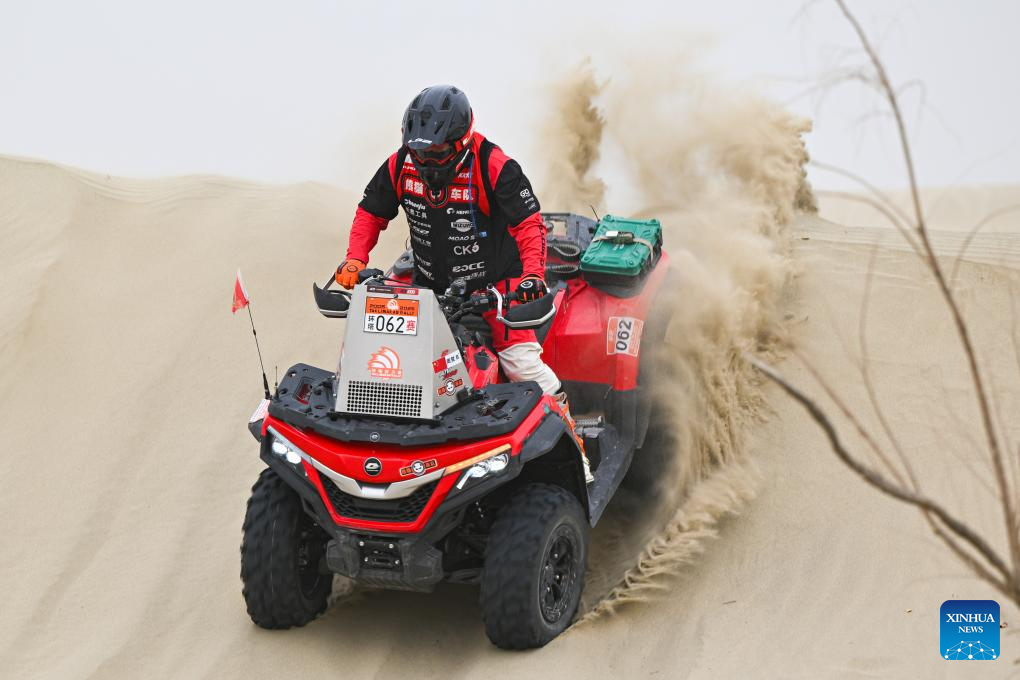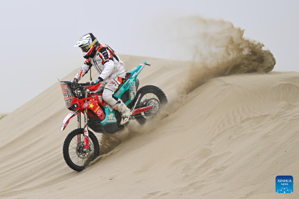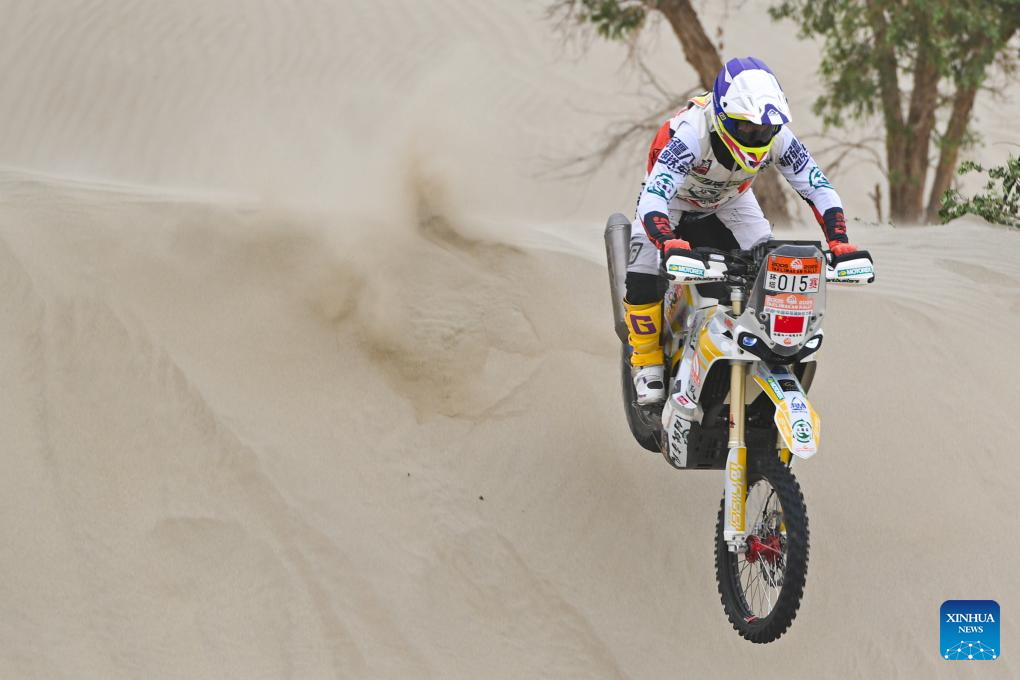 Zhou He of China competes during Stage 10 of the 2025 Taklimakan Rally in Kashgar, northwest China's Xinjiang Uygur Autonomous Region, June 1, 2025. (Xinhua/Xin Yuewei)