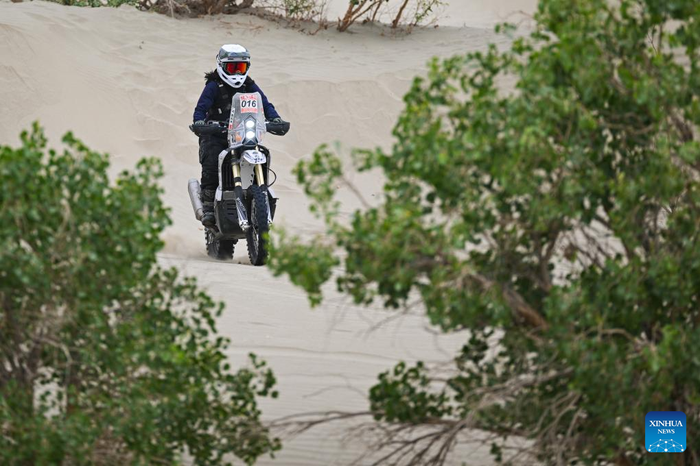 Zhang Qianyuetong of China competes during Stage 10 of the 2025 Taklimakan Rally in Kashgar, northwest China's Xinjiang Uygur Autonomous Region, June 1, 2025. (Xinhua/Xin Yuewei)