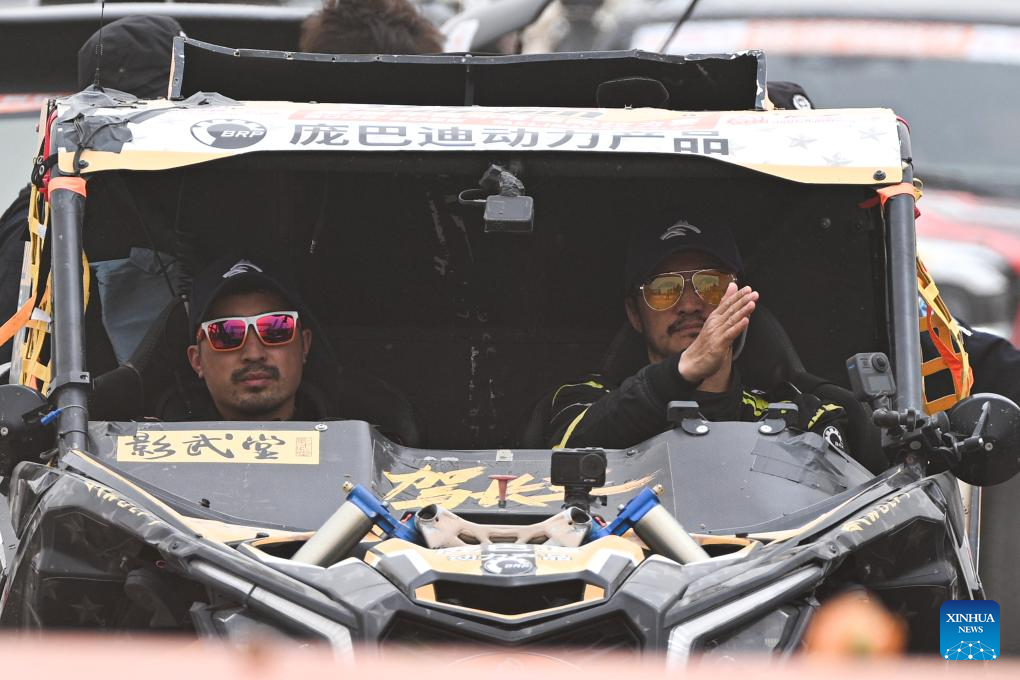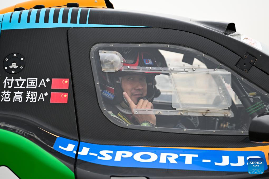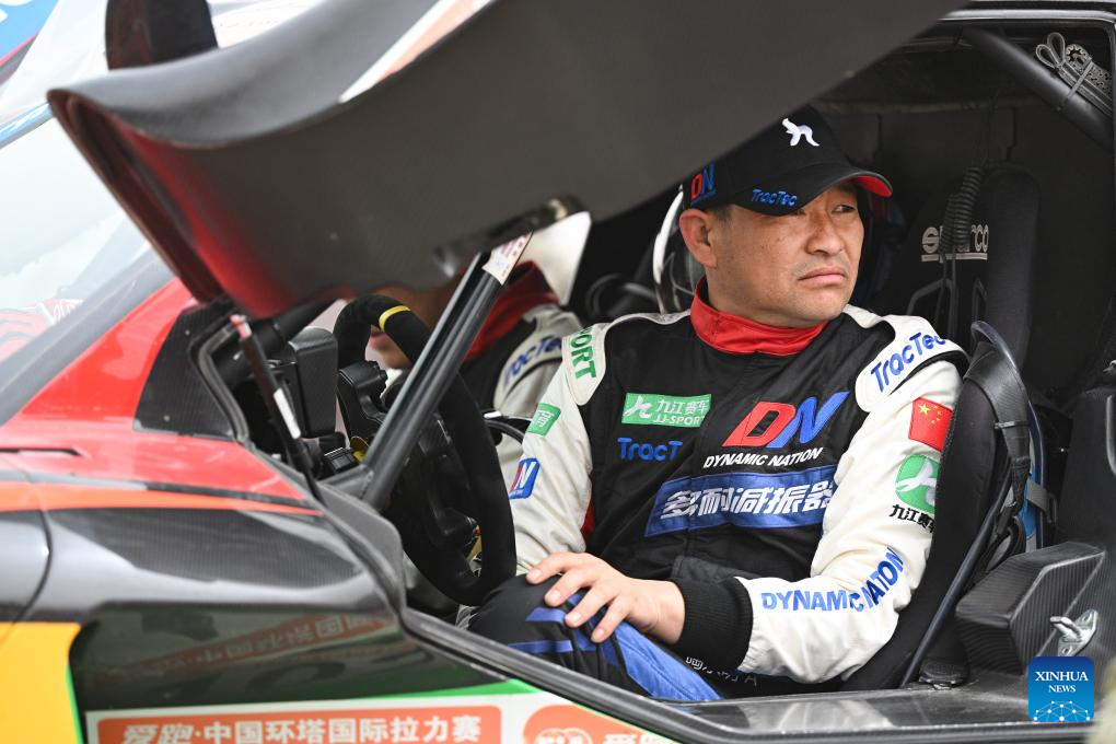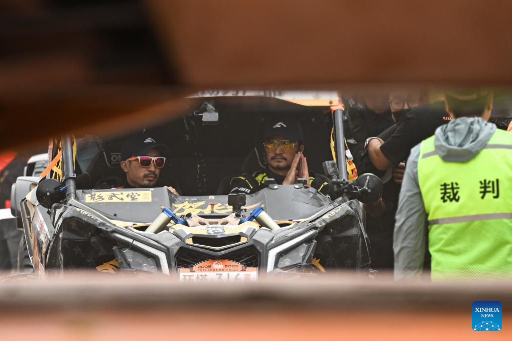 Driver Tao Yongming of China reacts after Stage 10 of the 2025 Taklimakan Rally in Kashgar, northwest China's Xinjiang Uygur Autonomous Region, June 1, 2025. (Xinhua/Xin Yuewei)
