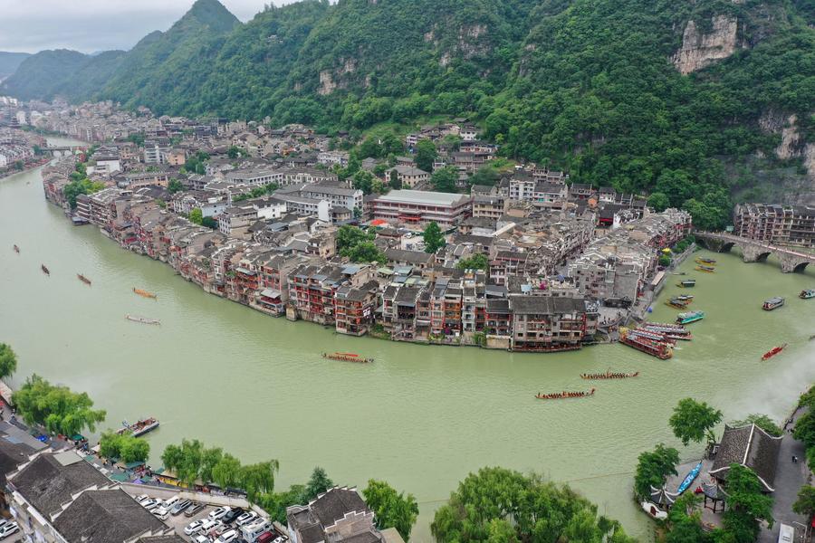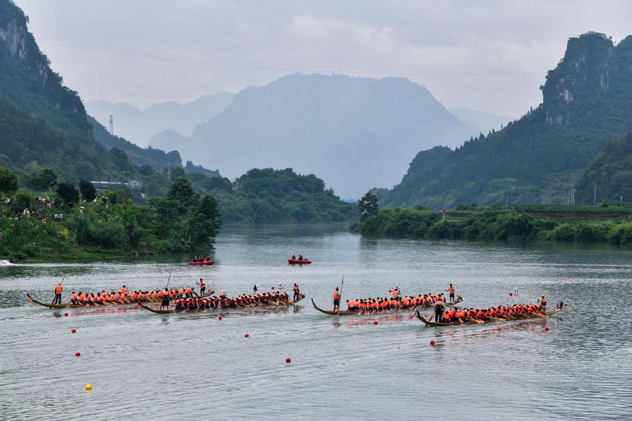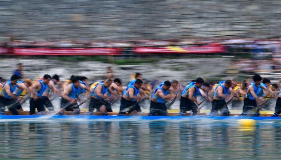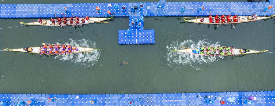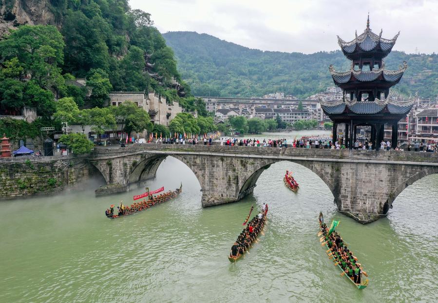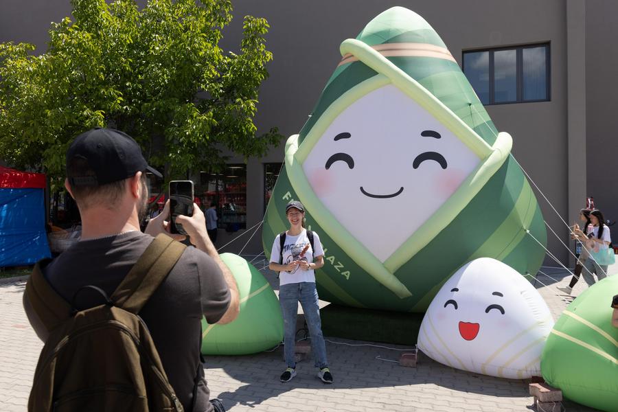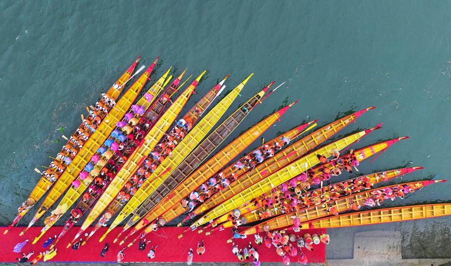 Children try their hands at making zongzi, a traditional Chinese food to mark the Dragon Boat Festival, at a nature education base in Xiaochang Township of Zunhua City, north China's Hebei Province, on May 30, 2025. (Photo by Liu Mancang/Xinhua)Villagers compete during a dragon boat race at Xixi National Wetland Park in Hangzhou, east China's Zhejiang Province, on May 31, 2025. (Xinhua/Huang Zongzhi)A dragon dance team performs for tourists during a celebration of the Dragon Boat Festival at the Mingsha Mountain and Crescent Spring scenic area in Dunhuang, northwest China's Gansu Province, on May 31, 2025. (Photo by Zhang Xiaoliang/Xinhua)An aerial drone photo taken on May 31, 2025 shows dragon boats rallied by the banks of Jialing River in Langzhong City, southwest China's Sichuan Province. (Photo by Wang Yugui/Xinhua)Villagers stage a traditional folk performance for tourists during a celebration of the Dragon Boat Festival in Tonglu County of Hangzhou City, east China's Zhejiang Province, on May 31, 2025. (Photo by Xu Junyong/Xinhua)An aerial drone photo shows locals rowing dragon boats in Zhenyuan ancient town in Qiandongnan Miao and Dong Autonomous Prefecture in southwest China's Guizhou Province, May 31, 2025. (Photo by Yuan Fuhong/Xinhua)An aerial drone photo shows locals rowing dragon boats in Zhenyuan ancient town in Qiandongnan Miao and Dong Autonomous Prefecture in southwest China's Guizhou Province, May 31, 2025. (Photo by Yuan Fuhong/Xinhua)People play a duck-catching game in celebration of the Dragon Boat Festival on Cisadane River in Tangerang, Banten Province, Indonesia, May 31, 2025. (Xinhua/Agung Kuncahya B.)People play a duck-catching game in celebration of the Dragon Boat Festival on Cisadane River in Tangerang, Banten Province, Indonesia, May 31, 2025. (Xinhua/Agung Kuncahya B.)Teams compete in a dragon boat race on the Jinjiang River in Bijiang District of Tongren city, southwest China's Guizhou Province, on May 31, 2025. (Xinhua/Yang Wenbin)Teams compete in a dragon boat race on the Jinjiang River in Bijiang District of Tongren city, southwest China's Guizhou Province, on May 31, 2025. (Xinhua/Yang Wenbin)A staff member performs Bianlian, or face-changing, part of the Sichuan Opera, on a bridge at the Zhuoshui Ancient Town scenic area in Qianjiang District, southwest China's Chongqing, on May 31, 2025. (Photo by Yang Min/Xinhua)Children enjoy touhu, a traditional Chinese game also known as pitch-pot, during an event celebrating the traditional Chinese Dragon Boat Festival in Christchurch, New Zealand, May 30, 2025. (Xinhua/Long Lei)An aerial drone photo taken on May 31, 2025 shows teams playing a dragon boat-based tug-of-war at Xujiachong bay in Zigui County, central China's Hubei Province, on May 31, 2025. (Photo by Zheng Jiayu/Xinhua)A woman poses for photos in front of an installation themed on zongzi, a traditional Chinese food to mark the Dragon Boat Festival, in Budapest, Hungary on May 31, 2025. (Photo by Attila Volgyi/Xinhua)■