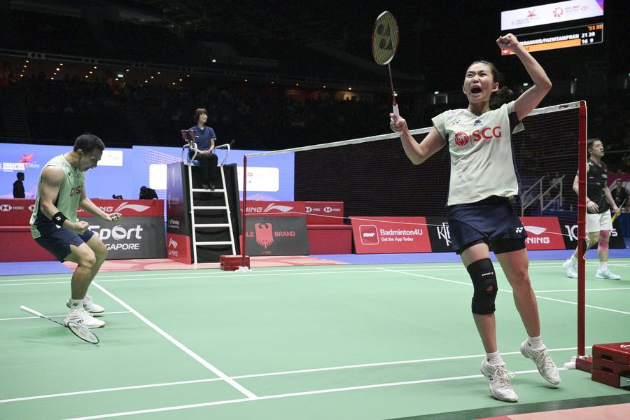 BEIJING, June 1 (Xinhua) -- Thailand secured two championships on Sunday at the Singapore Badminton Open, with Kunlavut Vitidsarn winning the men's singles crown and the mixed doubles pair of Dechapol Puavaranukroh and Supissara Paewsampran also triumphing.