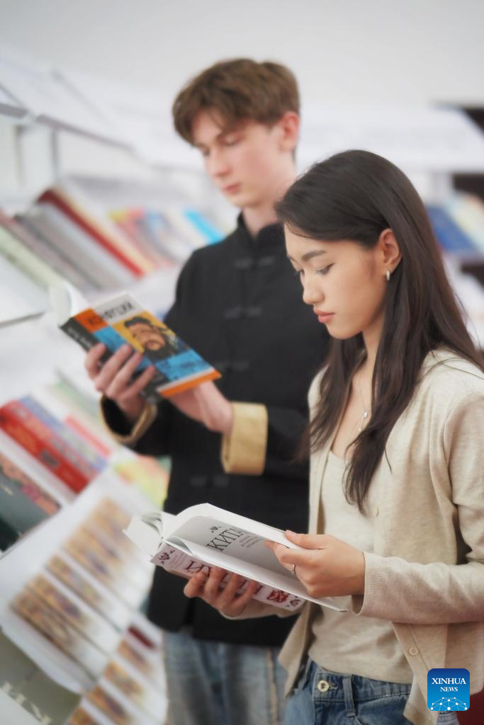 Students read books at an event during the 2025 Kazakhstan "Chinese Silk Road Literature Week" at Al-Farabi Kazakh National University in Almaty, Kazakhstan, May 31, 2025.