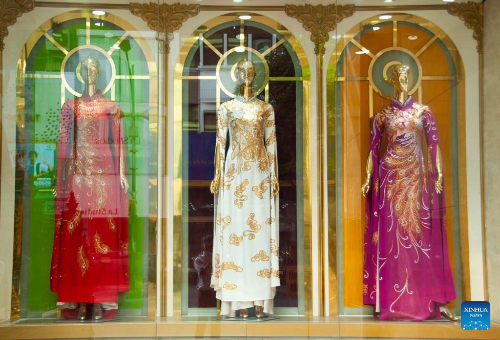 This photo taken on June 2, 2025 shows Ao Dai, Vietnam's traditional long dress, in Hanoi, Vietnam. (Photo by Dang Hong Dung/Xinhua)