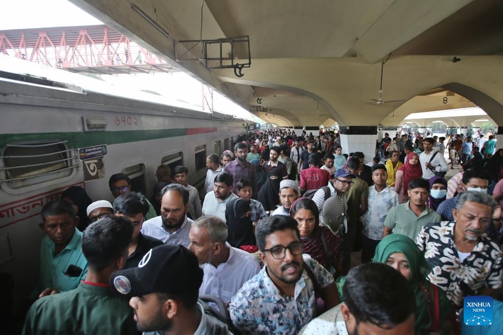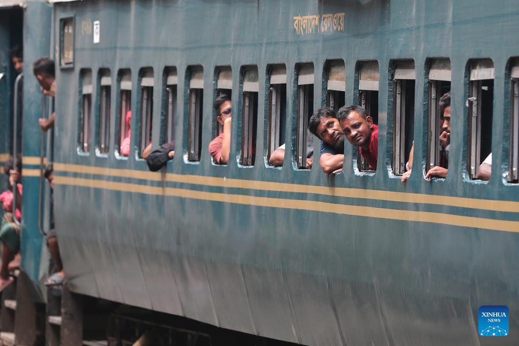 Passengers set off from a railway station in Dhaka, Bangladesh, May 31, 2025. As Eid al-Adha approaches, the capital has witnessed a surge of people returning home for the festival. (Photo by Habibur Rahman/Xinhua)