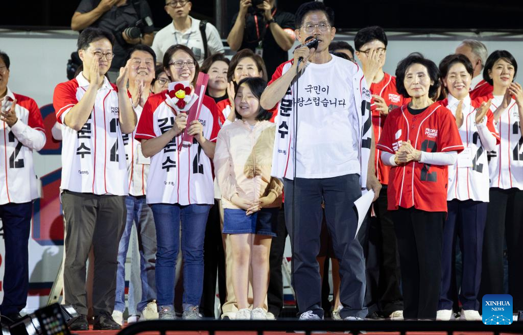 Kim Moon-soo, presidential candidate of People Power Party, attends an election campaign in Seoul, South Korea, June 2, 2025. South Korea will hold its presidential election on June 3. (Photo by Jun Hyosang/Xinhua)