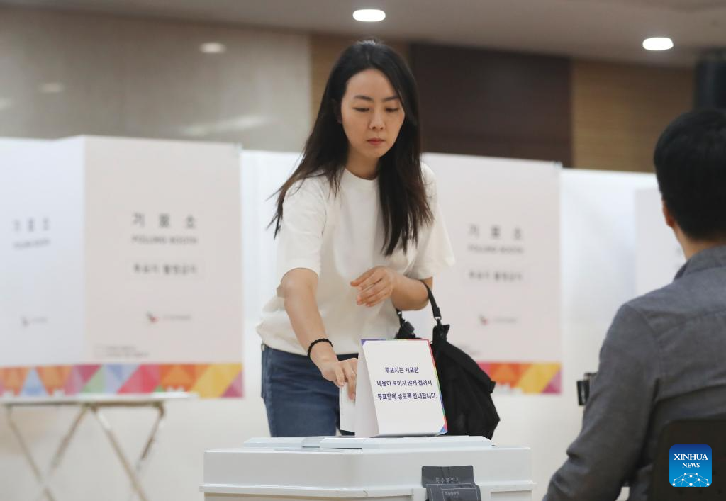 A voter casts his ballot at a polling station in Seoul, South Korea, June 3, 2025. (Xinhua/Yao Qilin)