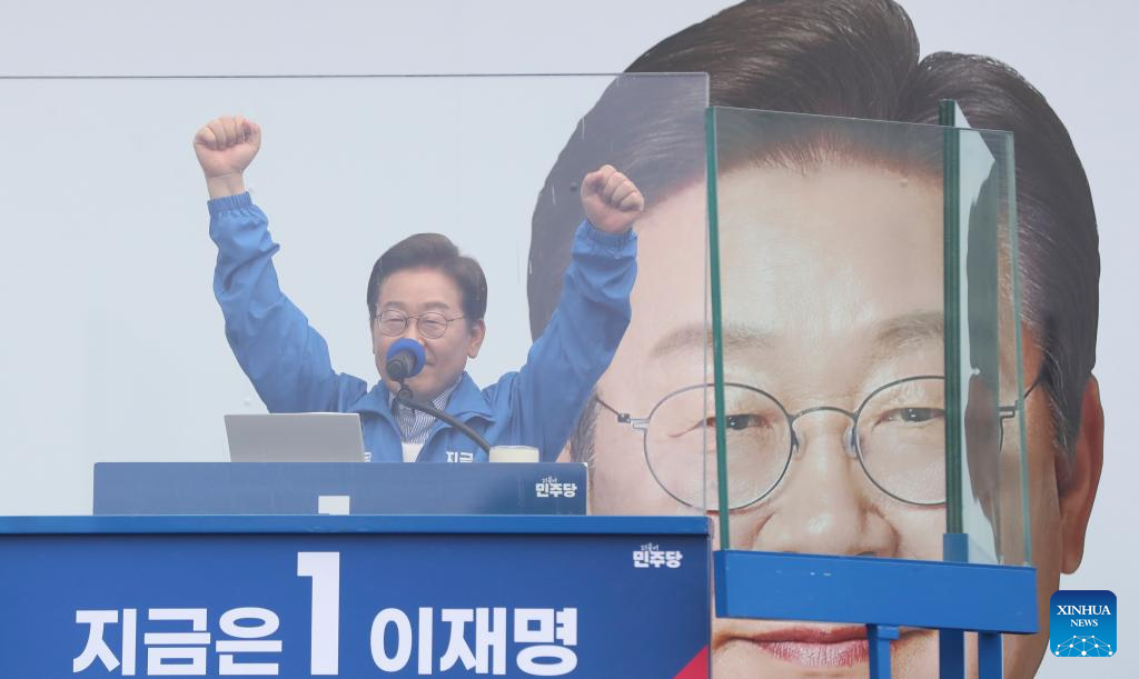 Lee Jae-myung, presidential candidate of Democratic Party, attends an election campaign in Seoul, South Korea, June 2, 2025. South Korea will hold its presidential election on June 3. (Xinhua/Yao Qilin)