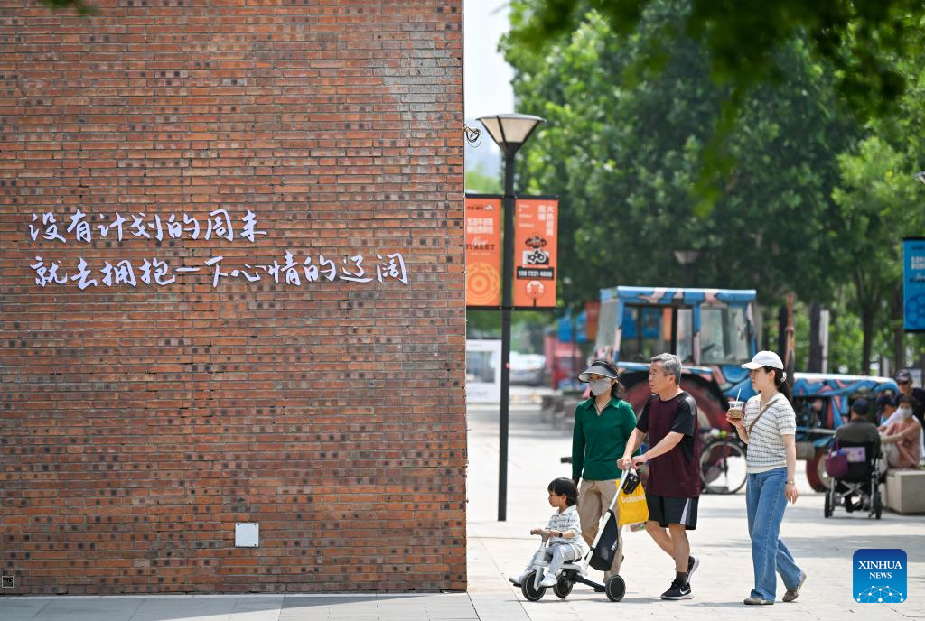 Citizens are seen in a renovated block at Tianjin Tractor Factory area in north China's Tianjin on May 30, 2025. Tianjin has actively implemented a renewal and upgrading program for central urban areas in recent years. A total of 40 urban renewal areas have been planned by far, focusing on the renovation of old residential areas, the protection and utilization of industrial relics and the reuse of idle assets.