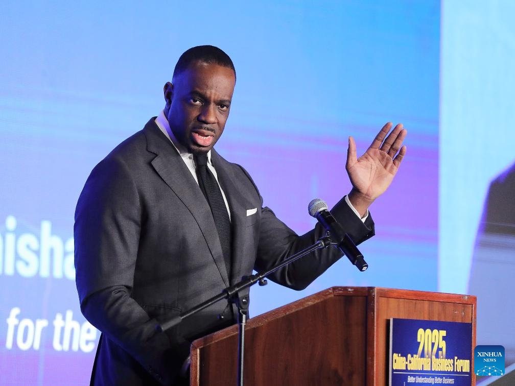 Secretary of Transportation for the State of California Toks Omishakin speaks at the 2025 China-California Business Forum in Los Angeles, California, the United States, June 2, 2025. The 2025 China-California Business Forum was held on Monday, drawing nearly 500 entrepreneurs and officials from China and the U.S. state of California to promote deeper economic, trade and cultural exchanges. (Photo by Qiu Chen/Xinhua)
