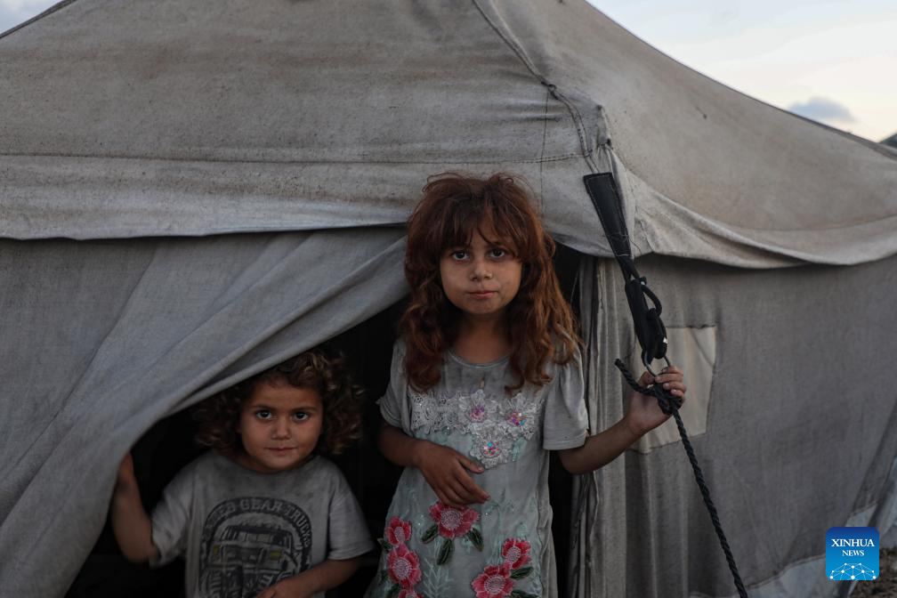 Displaced children are seen at a temporary shelter in the seaport area of western Gaza City, June 2, 2025. (Photo by Rizek Abdeljawad/Xinhua)
