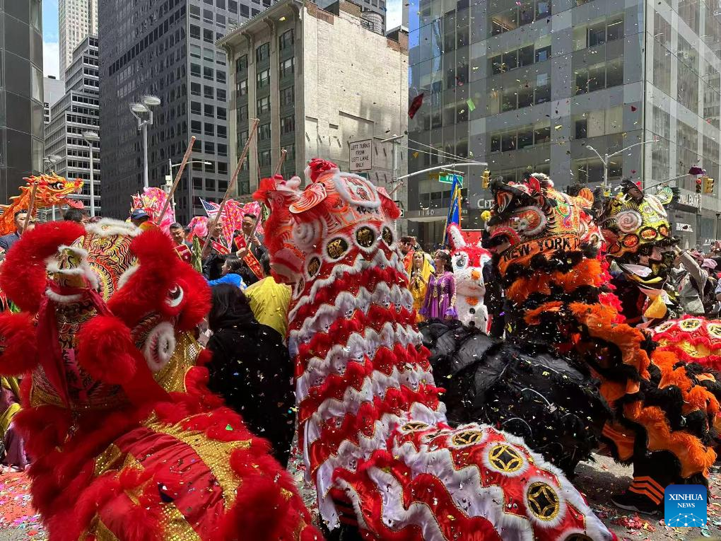 New York, June 2 (Xinhua) -- A parade was held in Manhattan, New York City (NYC), to celebrate the traditional culture of Asian Americans on Sunday, drawing hundreds of participants and spectators.