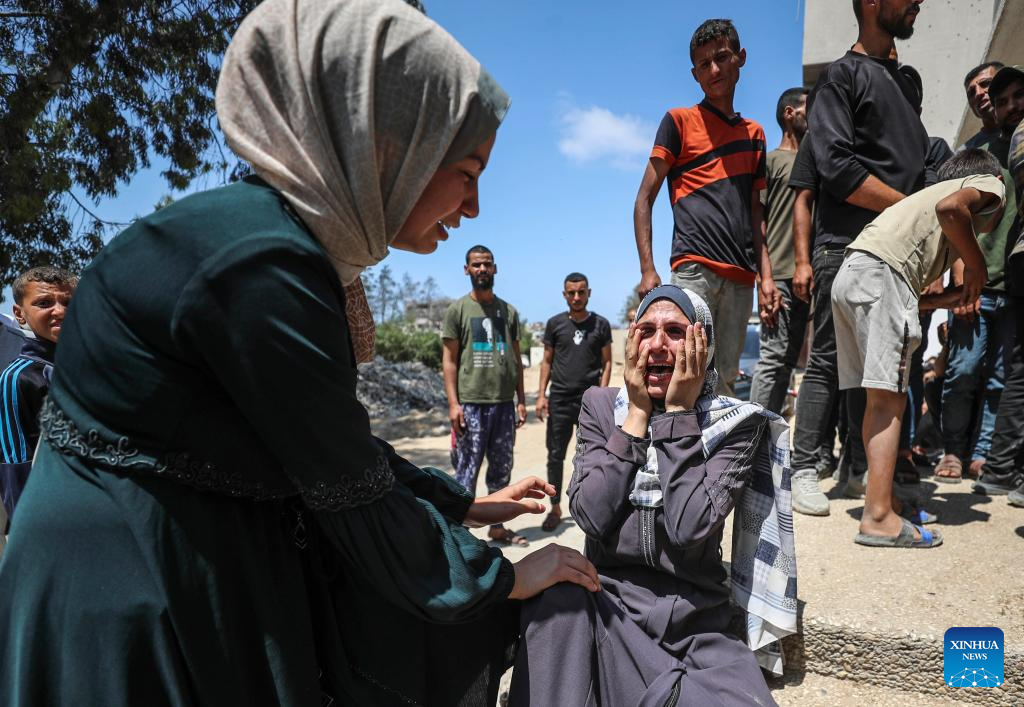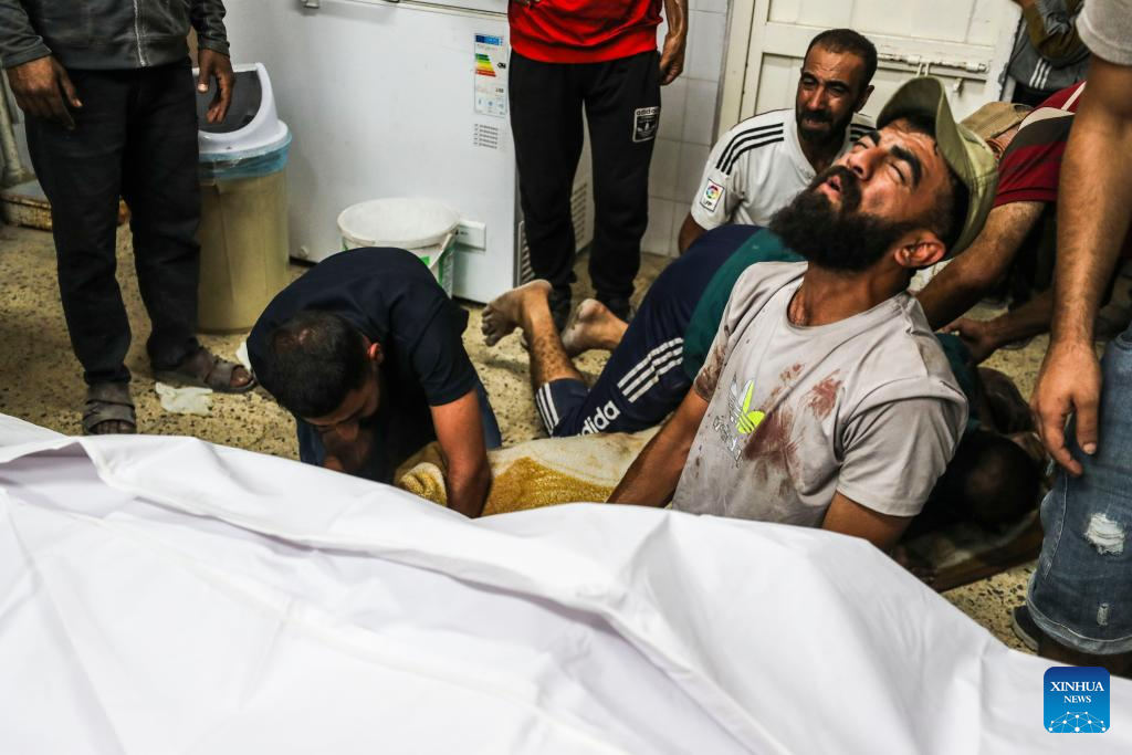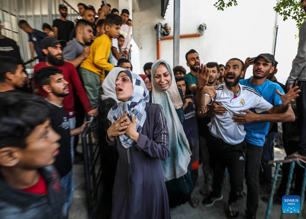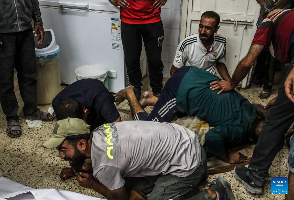 Palestinians mourn a victim killed in an Israeli airstrike, at a hospital in Gaza City, on June 3, 2025. (Photo by Mahmoud Zaki/Xinhua)
