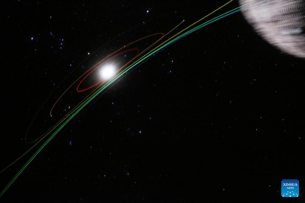 Photo taken on June 3, 2025 shows cosmic movement in Encounters in the Milky Way, the 7th space show of Hayden Planetarium at the American Museum of Natural History in New York City, the United States. The American Museum of Natural History in New York City is launching a new space show to present the story of cosmic motion and how that impacts the solar system, offering a journey through the history and future of the Milky Way galaxy. (Xinhua/Liu Yanan)