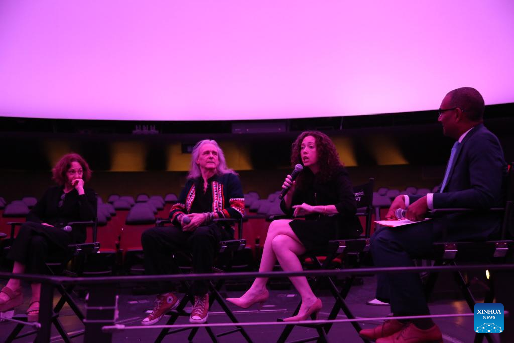 Jackie Faherty (2nd R), curator of the Encounters in the Milky Way, speaks at a panel discussion at the American Museum of Natural History in New York City, the United States, on June 3, 2025. The American Museum of Natural History in New York City is launching a new space show to present the story of cosmic motion and how that impacts the solar system, offering a journey through the history and future of the Milky Way galaxy. (Xinhua/Liu Yanan)