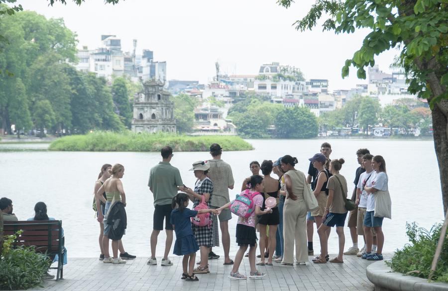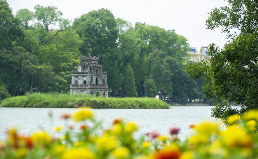 HANOI, June 4 (Xinhua) -- People from all over the world enjoy the beautiful scenery of Hoan Kiem Lake in Hanoi, the capital city of Vietnam.