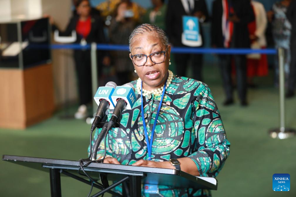 Liberian Deputy Minister of Foreign Affairs Deweh E. Gray speaks to the press after Liberia was elected as a non-permanent member of the UN Security Council at the UN headquarters in New York, on June 3, 2025. Bahrain, Colombia, the Democratic Republic of the Congo (DRC), Latvia and Liberia were elected non-permanent members of the UN Security Council on Tuesday for a two-year term running from Jan. 1, 2026 to Dec. 31, 2027. (Xinhua/Xie E)