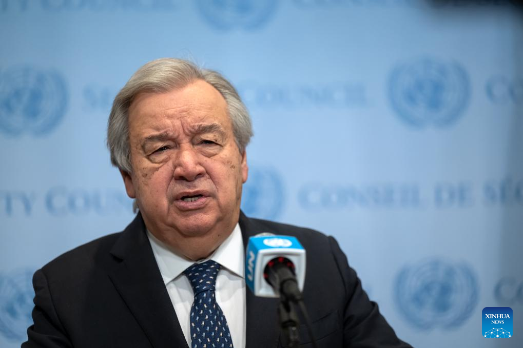 UN Secretary-General Antonio Guterres speaks during an annual memorial service at the UN headquarters in New York, on June 5, 2025. The United Nations (UN) on Thursday paid tribute to 168 of its personnel who lost their lives in the line of duty in 2024. (Mark Garten/UN Photo/Handout via Xinhua)