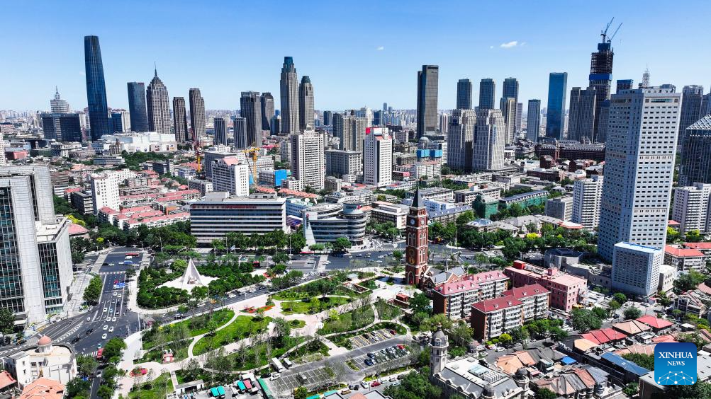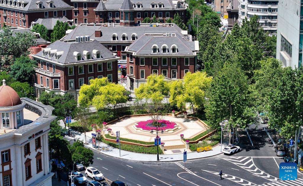 This drone photo shows a pocket park in Heping District of Tianjin, north China, June 3, 2025.