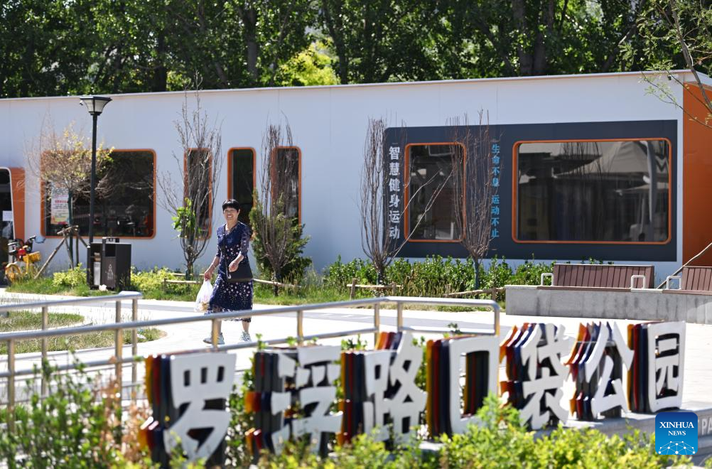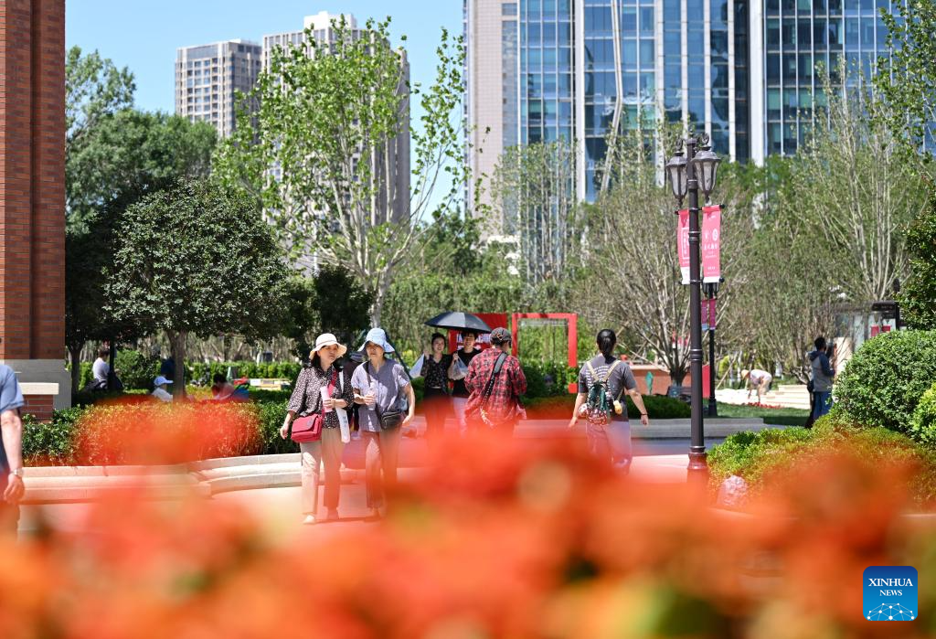 People take a walk at a pocket park in Heping District of Tianjin, north China, June 3, 2025.