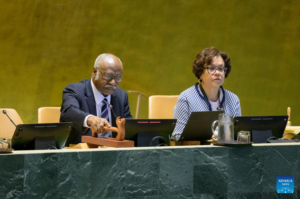 Philemon Yang (L), president of the UN General Assembly, presides over a meeting to elect members of the UN Economic and Social Council at the UN headquarters in New York, on June 4, 2025. Eighteen states, including China, were elected on Wednesday into the UN Economic and Social Council (ECOSOC), the coordinating body for the economic and social work of UN agencies and funds, for a three-year term. (Manuel Elias/UN Photo/Handout via Xinhua)