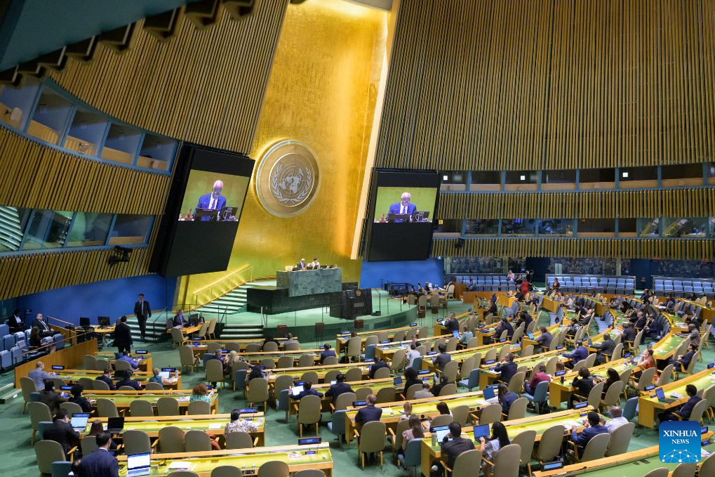 The UN General Assembly holds a meeting to elect members of the UN Economic and Social Council at the UN headquarters in New York, on June 4, 2025. Eighteen states, including China, were elected on Wednesday into the UN Economic and Social Council (ECOSOC), the coordinating body for the economic and social work of UN agencies and funds, for a three-year term. (Manuel Elias/UN Photo/Handout via Xinhua)