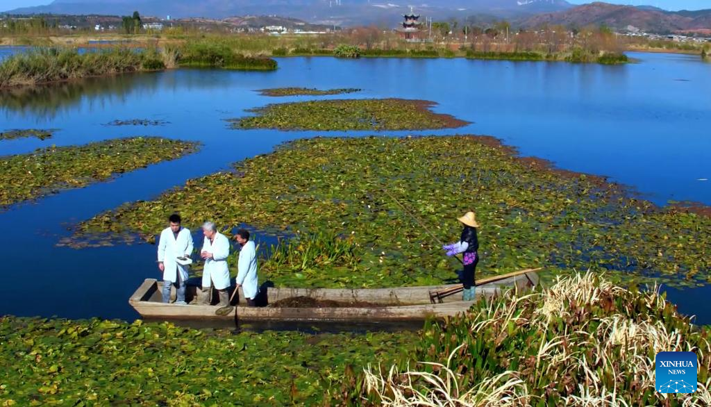 In 2020, Kong retired at the age of 70. He took out his personal savings to initiate a fund to train personnel for the protection of Erhai Lake and to support scientific research on its conservation. In recent years, the artificial cultivation area of ottelia acuminata in Yunnan has reached 3,000 mu (200 hectares), and the plant has become an important vegetable for local people. Shanghai Jiao Tong University also successfully developed the storage and preservation technology of ottelia acuminata, and extended its shelf life to 14 days. The vegetable has now become a popular dish on dining tables in cities outside Yunnan. (Xinhua/Liu Ying)