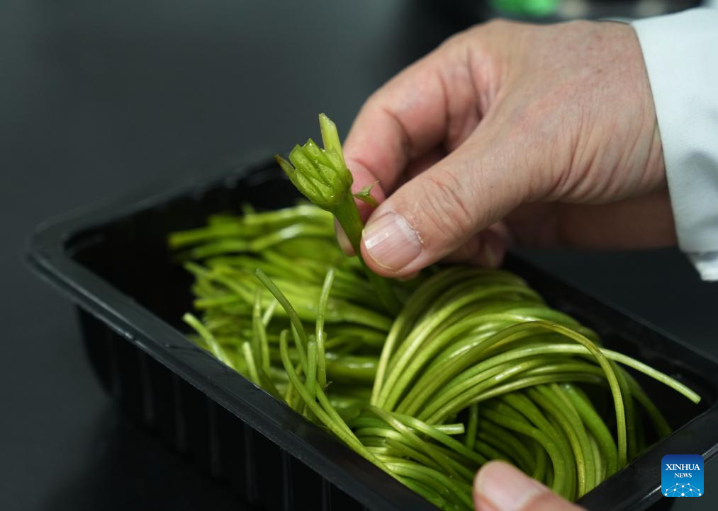 Freshly preserved ottelia acuminata is pictured at the School of Agriculture and Biology of Shanghai Jiao Tong University in east China's Shanghai, May 29, 2025. (Xinhua/Liu Ying)