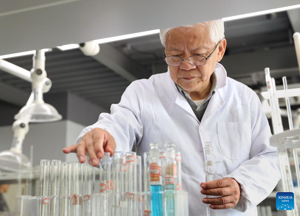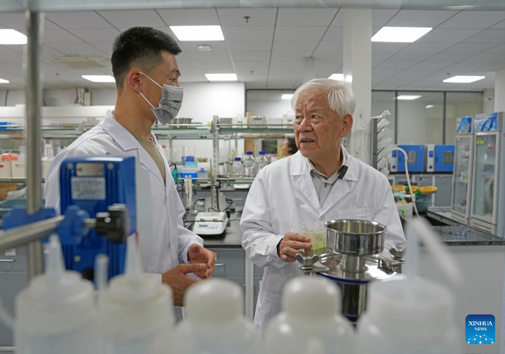 Kong Hainan is pictured in a lab at the School of Environmental Science and Engineering of Shanghai Jiao Tong University in east China's Shanghai, April 9, 2021. (Xinhua/Liu Ying)