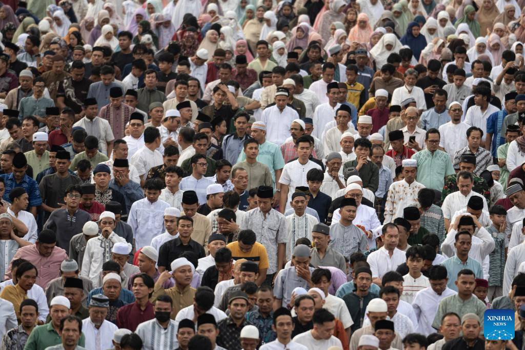 People attend Eid al-Adha prayer at Jatinegara in Jakarta, Indonesia on June 6, 2025. (Xinhua/Veri Sanovri)