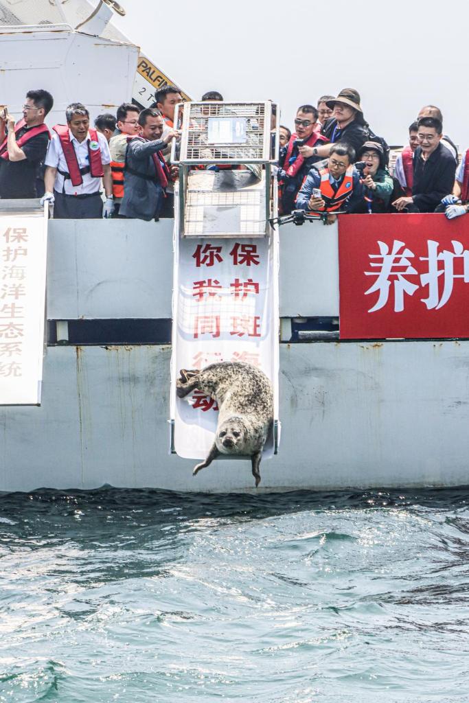 Having received professional wildlife reconditioning training at the Liaoning Ocean and Fisheries Science Research Institute, the seals are now adapted to the wild, capable of feeding on their own.