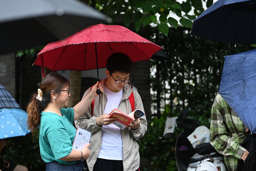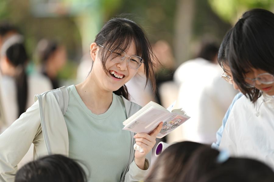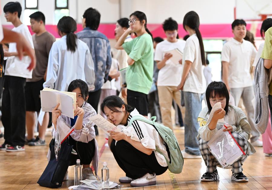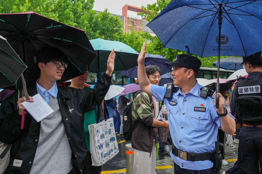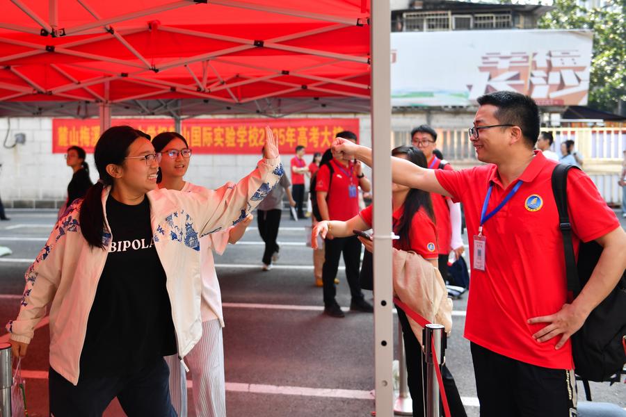 A student prepares for the exam outside a national college entrance examination site in Xi'an, northwest China's Shaanxi Province, June 7, 2025. (Xinhua/Zou Jingyi)A student hugs her teacher before walking into a national college entrance examination site in Harbin, northeast China's Heilongjiang Province, June 7, 2025. (Xinhua/Wang Jianwei)Teachers cheer students on at a national college entrance examination site in Sanjiang Dong Autonomous County, south China's Guangxi Zhuang Autonomous Region, June 7, 2025. (Xinhua/Zhang Ailin)A teacher fist bumps a student outside a national college entrance examination site in Changsha, central China's Hunan Province, June 7, 2025. (Xinhua/Chen Zhenhai)A student prepares for the exam at a national college entrance examination site in north China's Tianjin, June 7, 2025. (Xinhua/Li Ran)A student wearing a T-shirt with the words "all correct" on it waits to enter the examination room at a national college entrance examination site in north China's Tianjin, June 7, 2025. (Xinhua/Li Ran)Students prepare for the exam at a national college entrance examination site in north China's Tianjin, June 7, 2025.(Xinhua/Li Ran)Police and teachers cheer students on outside a national college entrance examination site in Sanjiang Dong Autonomous County, south China's Guangxi Zhuang Autonomous Region, June 7, 2025. (Xinhua/Zhang Ailin)A policeman gives a high-five to a student outside a national college entrance examination site in Nanjing, east China's Jiangsu Province, June 7, 2025. (Xinhua/Li Bo)■