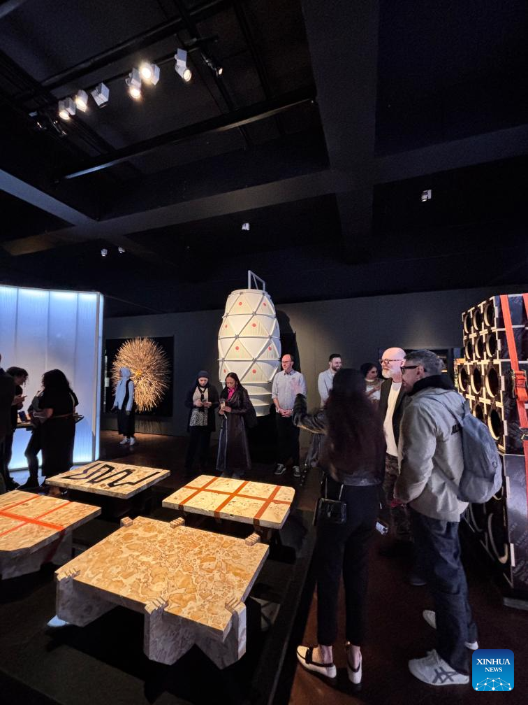 This photo taken with a mobile phone on June 5, 2025 shows a scene at the Qatar pavilion of the 2025 London Design Biennale in London, Britain. (Xinhua/Zheng Bofei)