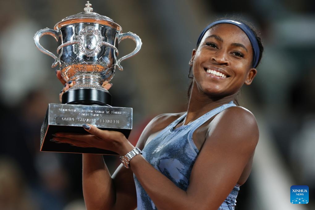 PARIS, June 7 (Xinhua) -- Second-seeded Coco Gauff of the United States beat world No. 1 Aryna Sabalenka of Belarus 6-7 (5), 6-2, 6-4 in the women's singles final of the French Open on Saturday to clinch her second Grand Slam title.