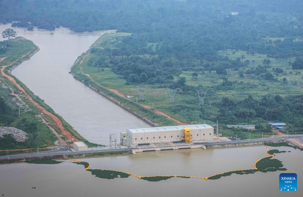 An aerial drone photo taken on May 28, 2025 shows the Gribo-Popoli Hydroelectric Power Plant in Soubre, Cote d'Ivoire. (Xinhua/Wang Guansen)