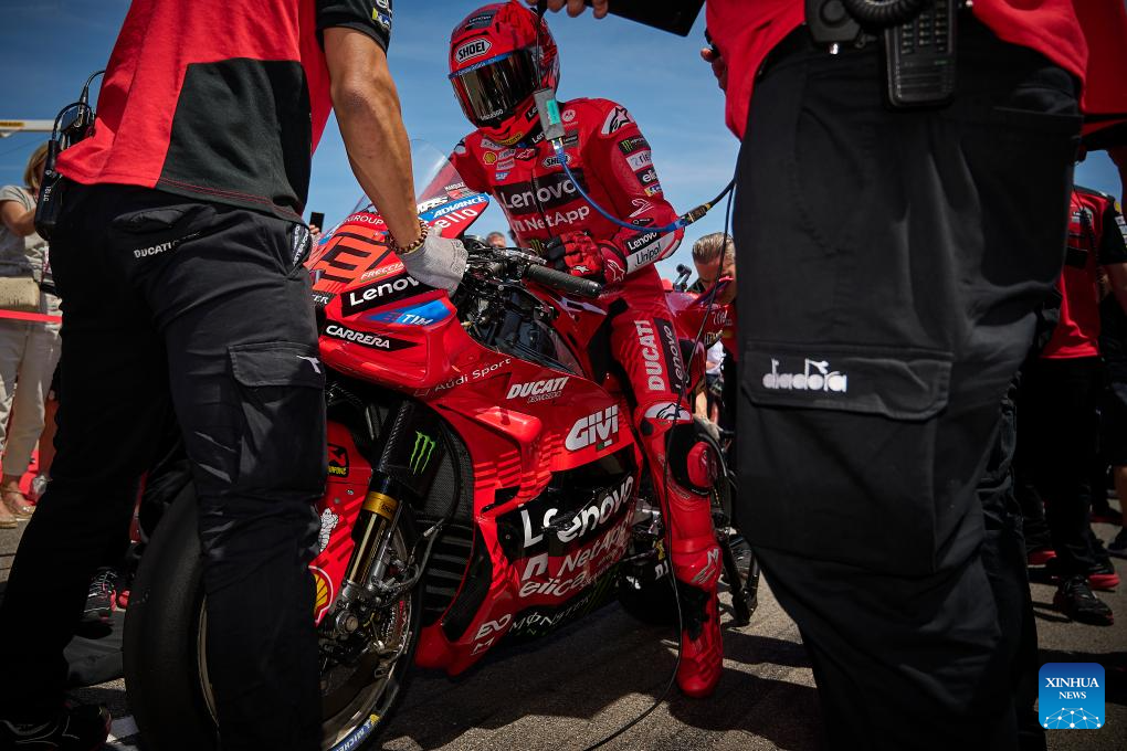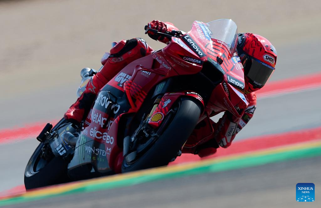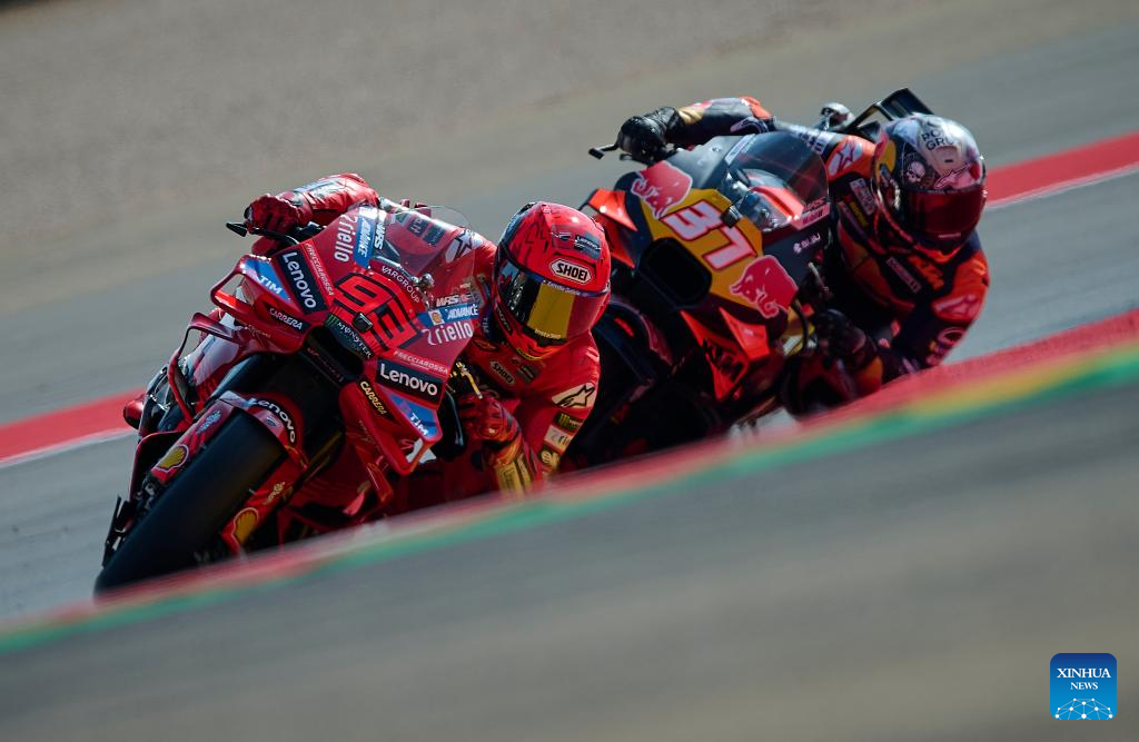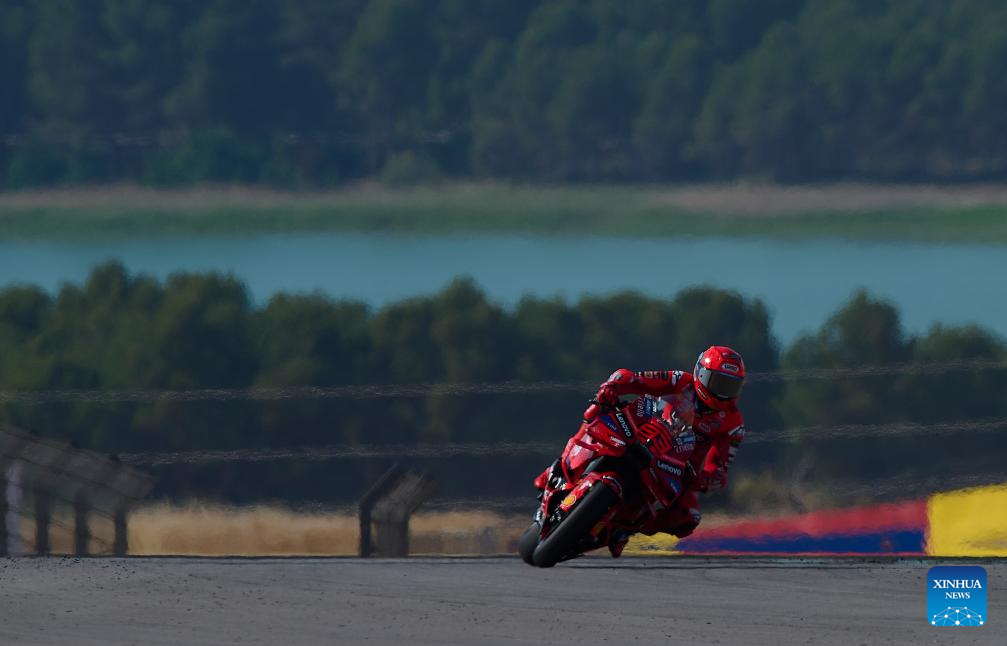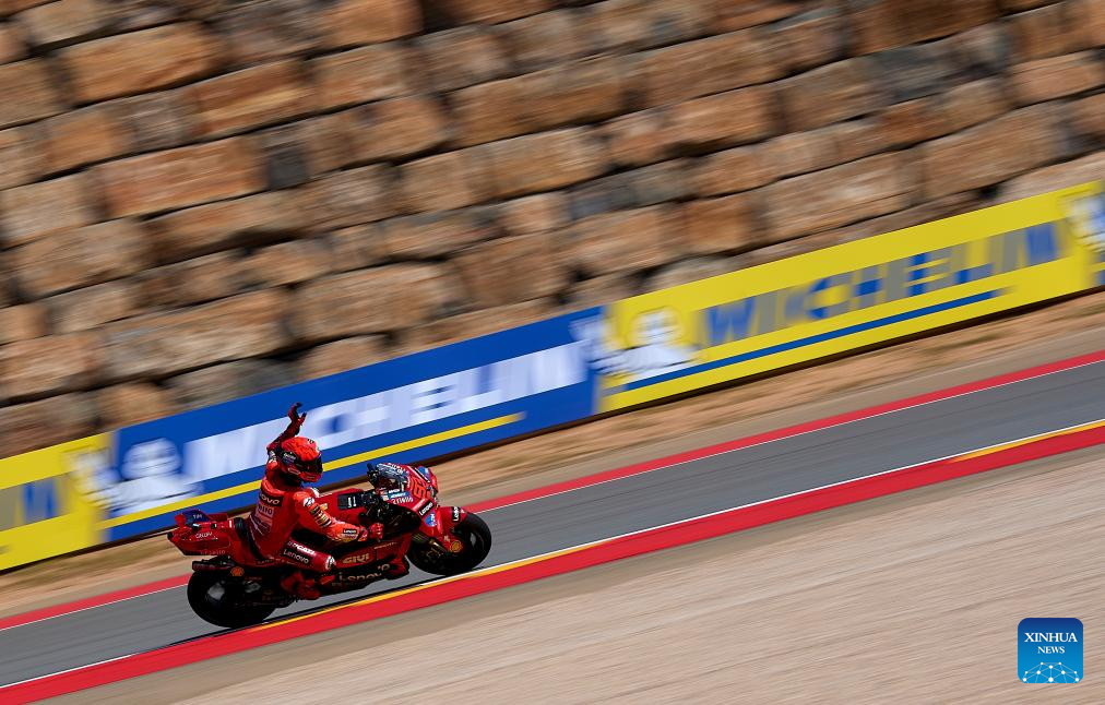 Marc Marquez of Ducati Lenovo Team during the Sprint Race of the MotoGp Aragon Grand Prix at Motorland Aragon circuit, Alcaniz, Spain, on June 7, 2025. (Str/Xinhua)