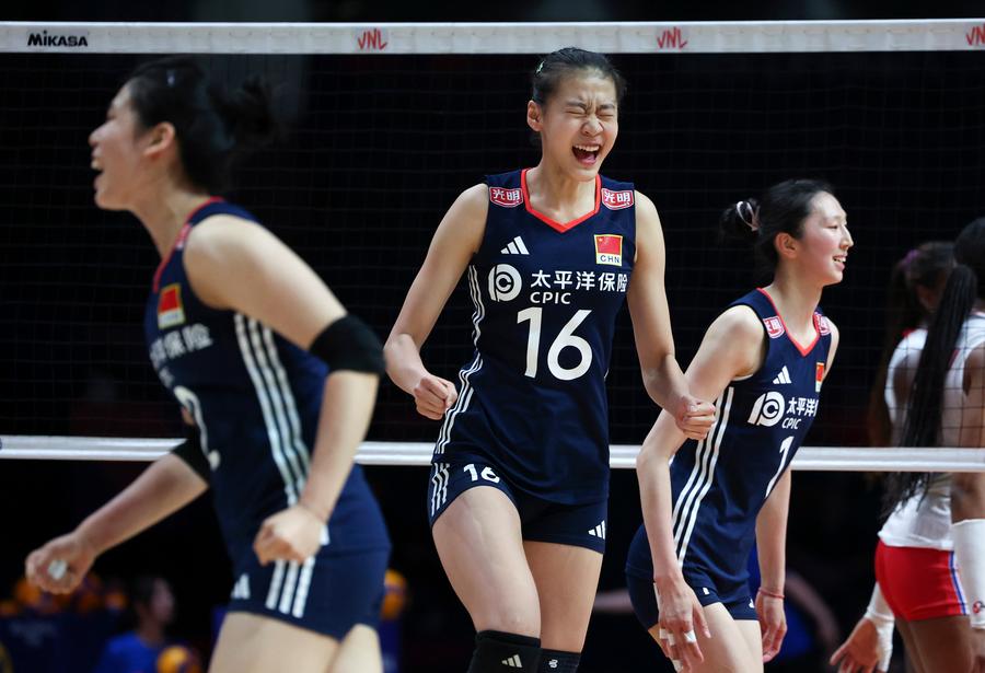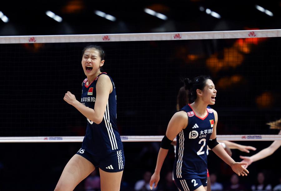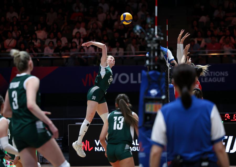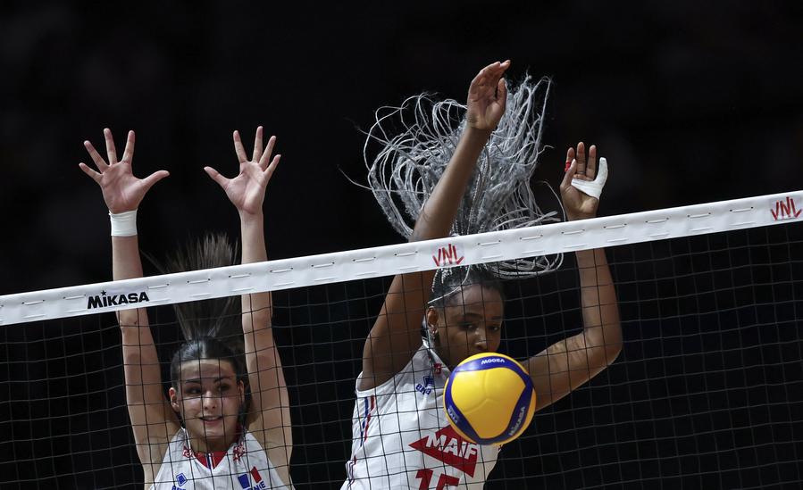 BEIJING, June 7 (Xinhua) -- Host China thrilled the home crowd with a dominant straight-set victory over France, while Türkiye battled past Poland in a five-set showdown on Saturday at the FIVB Volleyball Nations League (VNL) in Beijing, setting the stage for a high-stakes final day.