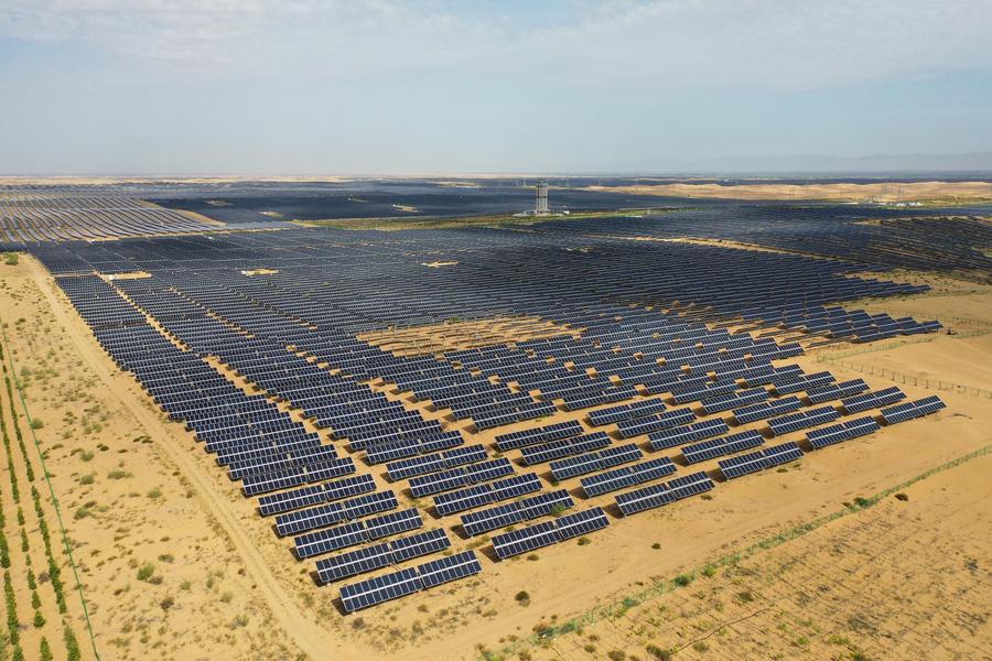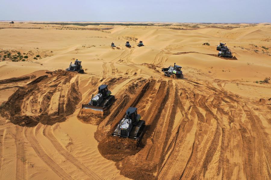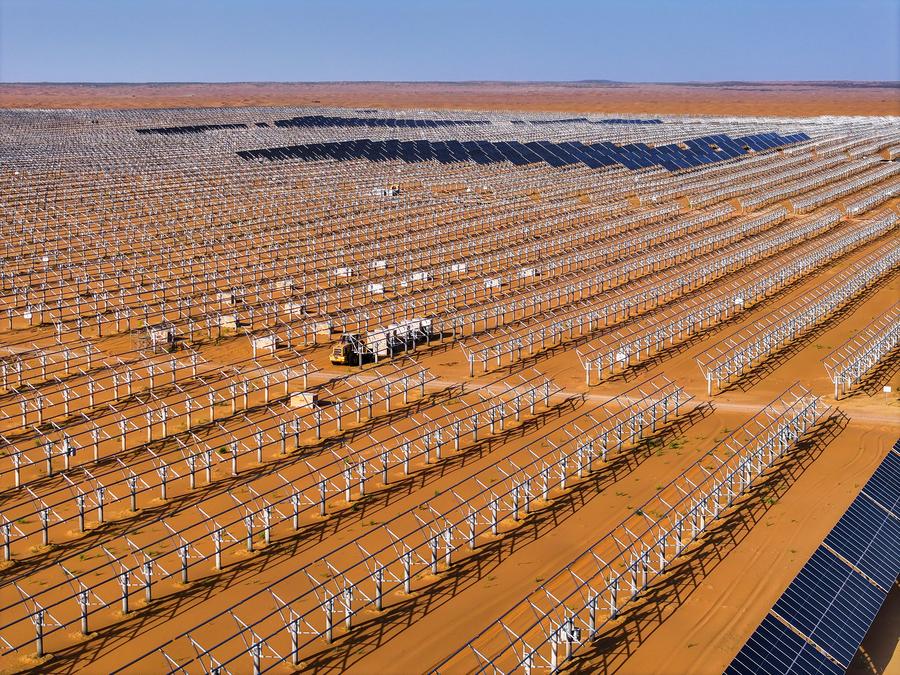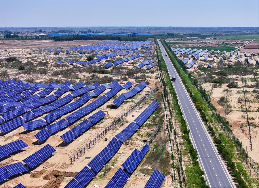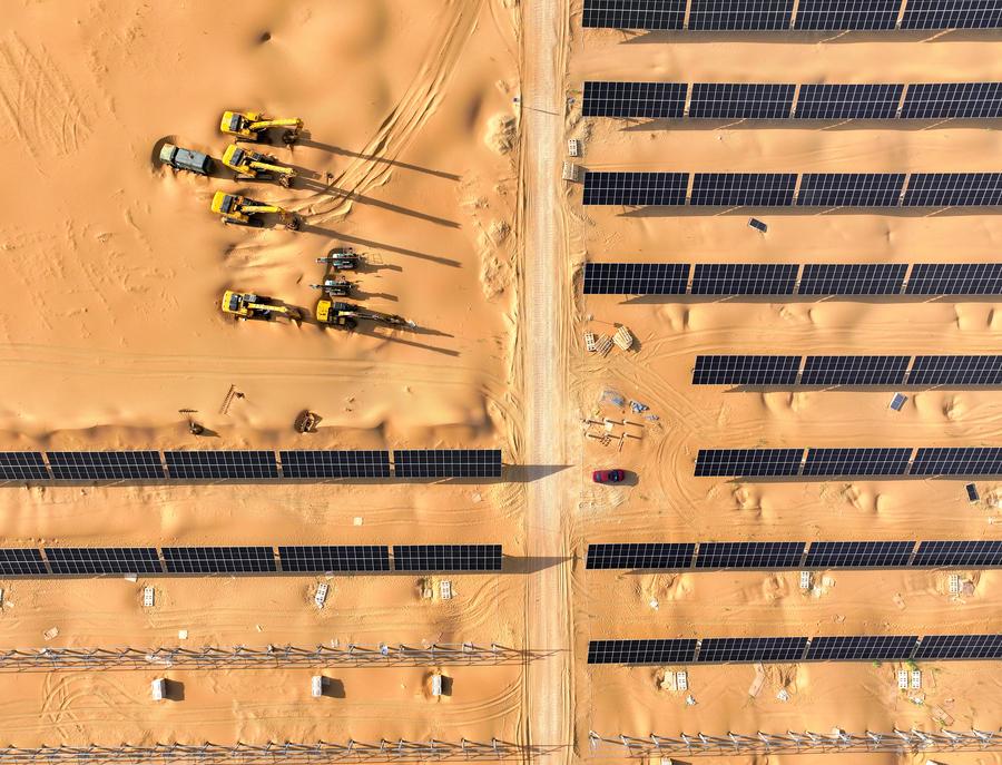 An aerial drone photo taken on June 6, 2025 shows a photovoltaic project in Kubuqi Desert, north China's Inner Mongolia Autonomous Region. (Xinhua/Lian Zhen)An aerial drone photo taken on June 7, 2025 shows machineries leveling sandy land for the construction of a photovoltaic project in Kubuqi Desert in Dalad Banner of north China's Inner Mongolia Autonomous Region. (Xinhua/Li Zhipeng)An aerial drone photo taken on June 7, 2025 shows a photovoltaic project in Kubuqi Desert in north China's Inner Mongolia Autonomous Region. (Xinhua/Li Zhipeng)Workers install photovoltaic panels at a photovoltaic project in Kubuqi Desert, north China's Inner Mongolia Autonomous Region, June 6, 2025. (Xinhua/Gao Wei)A worker installs photovoltaic panels at a photovoltaic project in Kubuqi Desert, north China's Inner Mongolia Autonomous Region, June 6, 2025. (Xinhua/Li Zhipeng)An aerial drone photo taken on June 5, 2025 shows a photovoltaic project in Ulan Buh Desert, in Dengkou County of Bayannur, north China's Inner Mongolia Autonomous Region. (Xinhua/Lian Zhen)An aerial drone photo taken on June 6, 2025 shows a photovoltaic project in Kubuqi Desert, north China's Inner Mongolia Autonomous Region. (Xinhua/Lian Zhen)An aerial drone photo taken on June 5, 2025 shows a photovoltaic project in Ulan Buh Desert, in Dengkou County of Bayannur, north China's Inner Mongolia Autonomous Region. (Xinhua/Lian Zhen)An aerial drone photo taken on June 5, 2025 shows an integrated sand control and photovoltaic project at a state forestry area in the edge of Ulan Buh Desert in Linhe District of Bayannur, north China's Inner Mongolia Autonomous Region. (Xinhua/Lian Zhen)An aerial drone photo taken on June 5, 2025 shows an integrated sand control and photovoltaic project at a state forestry area in the edge of Ulan Buh Desert in Linhe District of Bayannur, north China's Inner Mongolia Autonomous Region. (Xinhua/Lian Zhen)Seeds of desert plants are pictured at an integrated sand control and photovoltaic project at a state forestry area in the edge of Ulan Buh Desert in Linhe District of Bayannur, north China's Inner Mongolia Autonomous Region, June 5, 2025. (Xinhua/Gao Wei)A staff member introduces desert plant specimens at an integrated sand control and photovoltaic project at a state forestry area in the edge of Ulan Buh Desert in Linhe District of Bayannur, north China's Inner Mongolia Autonomous Region, June 5, 2025. (Xinhua/Gao Wei)An aerial drone photo taken on June 7, 2025 shows a photovoltaic project in Kubuqi Desert in north China's Inner Mongolia Autonomous Region. (Xinhua/Lian Zhen)Workers install photovoltaic panels at a photovoltaic project in Kubuqi Desert, north China's Inner Mongolia Autonomous Region, June 6, 2025. (Xinhua/Li Zhipeng)An aerial drone photo taken on June 6, 2025 shows a photovoltaic project in Kubuqi Desert, north China's Inner Mongolia Autonomous Region. (Xinhua/Lian Zhen)■