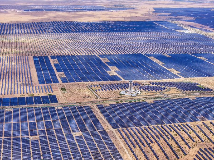 EcoChina|Photovoltaic projects transform sandy terrain into "blue seas" in north China's deserts