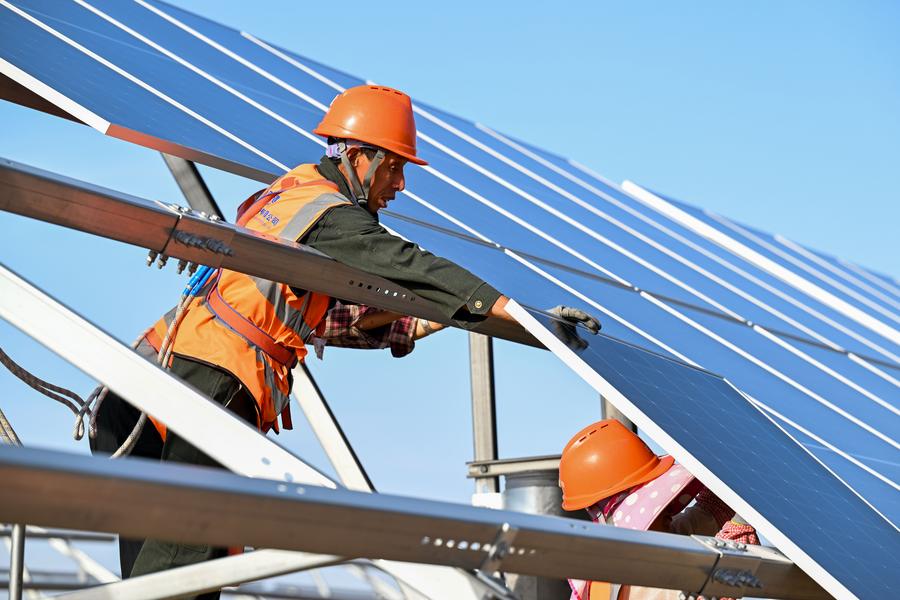 EcoChina|Photovoltaic projects transform sandy terrain into "blue seas" in north China's deserts-Xinhua